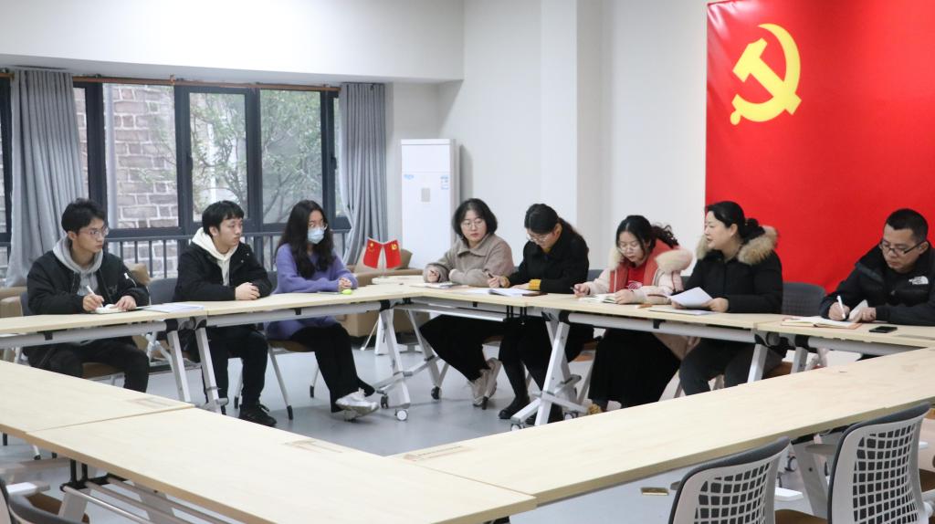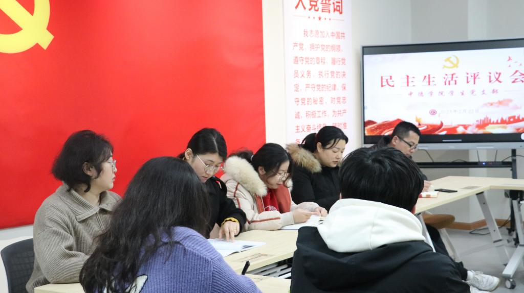 首先,王媛媛老师组织大家学习习近平总书记在2022年度中共中央政治局民主生活会上的重要讲话精神,对重庆工作作出的营造良好政治生态,坚持“两点”定位,实现“两地”“两高”目标,发挥“三个作用”,推动成渝地区双城经济圈建设,加快建设西部陆海新通道等系列重要指示批示精神。然后代表学生党支部委员会向全体党员做了2022年度的支部工作总结述职报告,详细讲述了支部这一年的工作开展情况,包括党员、入党积极分子的培养发展;梳理并引导大家回顾了党支部这一年组织的各类学习实践活动等。随后支部党员同志积极参与了2022年支部工作的评测和讨论,对2023年支部工作出谋划策。经过充分、热烈、详细的讨论后,全体党员填写了测评表。