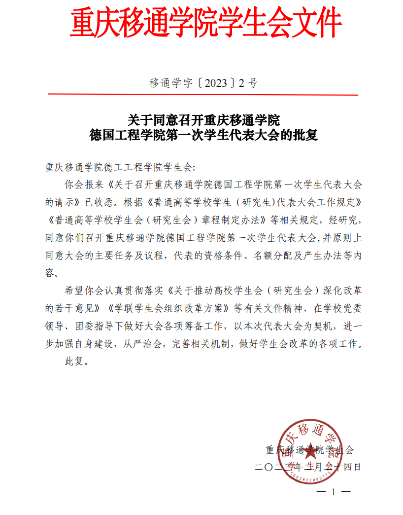 规范召开学生代表大会是新时期深化学生会改革的重要措施,是开创学生会工作新局面,促进学生会改革发展的新要求。作为新时代的德工学子,我们始终铭记自身历史责任,将个人梦想融入时代潮流,用青春脚步紧随国家脉动,积极进取,开拓创新,勇于奋斗,在实现中华民族伟大复兴的道路上,不忘初心,砥砺前行。在校党委领导、校团委指导下,经过我院全体代表的积极筹备和师生的共同努力,德国工程学院第一次学代会于3月1日在南湖书院党团活动室胜利召开。