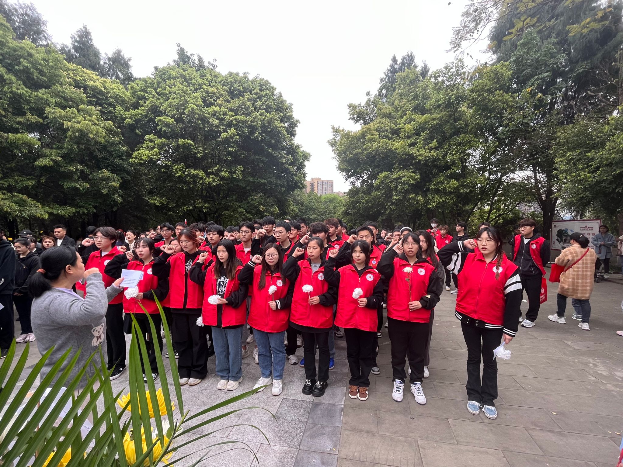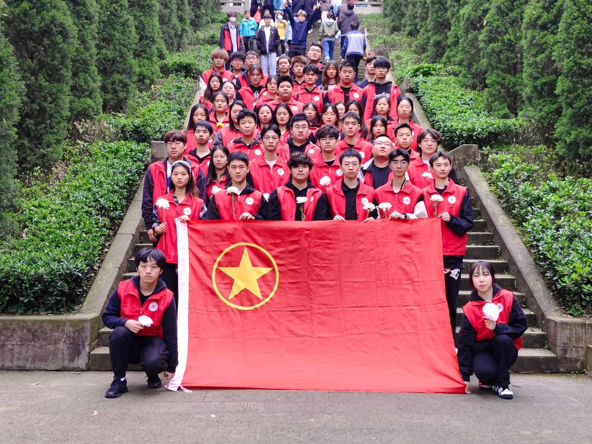 4月5日上午8:00,同学们在德国工程学院教学楼下集合整队,由学生党支部老师莫晓雯,肖瑶,李嘉欣和团总支学生书记处书记朱洪龙带队统一徒步前往合川区人民公园革命烈士纪念碑,阳光透过淡淡的震气,伴随着我们心中氤氲而生的情愫越发浓烈。