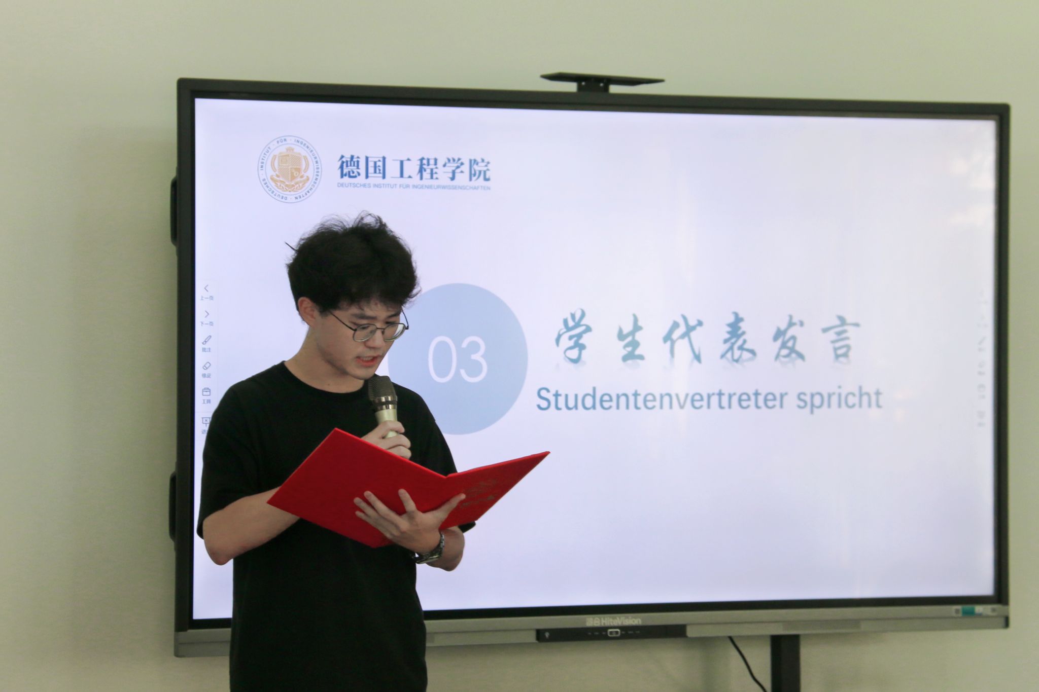 花开花落自有期,聚散离合终有时。德国工程学院于2023年9月14日下午四时在第六教学楼德工悦读圈举行了第五期“德工下午茶”活动,本次活动邀请到了机械设计制造及其自动化(中外合作办学)专业外教老师曲文敏教授,活动主要围绕“感恩和启航”进行舒适的交流与分享,由2022级机械专业的赵子栋同学主持此次活动。