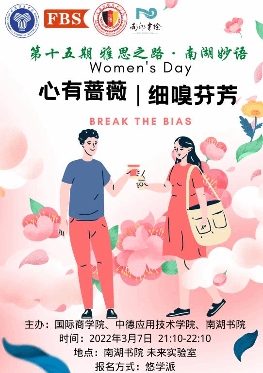 春暖花开,花香四溢。国际三八妇女节前夕,由国际商学院国际商科教研室、中德应用技术学院雅思英语教研室和南湖书院联合举办的第十五期雅思之路·南湖妙语活动在南湖书院未来实验室如期展开。