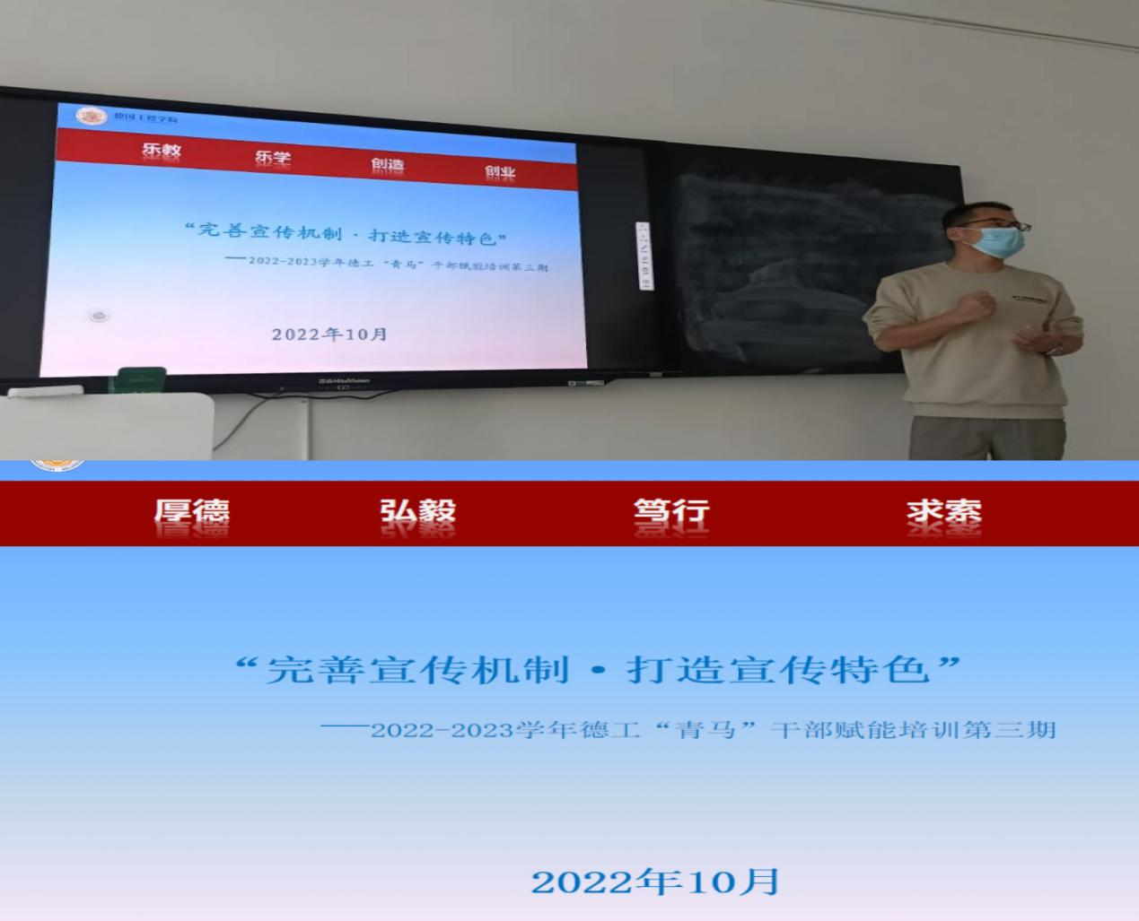 为进一步提高“青马工程”初阶班学员的工作技能,更好地,用心去服务每一位同学,激励全体学生干部不忘初心,牢记使命,争做德工先行者。10月8日起,我院团总支组织部牵头开展了一系列干部赋能培训。
