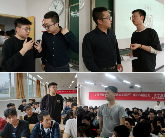 活动伊始,刘又衡校友对在场同学进行了一个小调查,他发现目前通信与物联网工程学院学生大多从事技术类、销售类、IT和网络安全等方面的工作,他提到同学们未来从事哪个行业,都需要拥有夯实的专业知识基础,这样才能在工作岗位上发光发彩。广博的知识储备、团队合作能力、自信的个人魅力能够帮助我们职场道路走得更加顺畅。他建议低年级的同学积极与辅导员或者有经验的老师交流未来的职业规划,以便找到自己职业方向。正在准备找工作的同学,更要积极参加各大高校的招聘会,了解行业招聘标准,积累面试经验,以积极的心态面对就业之路。