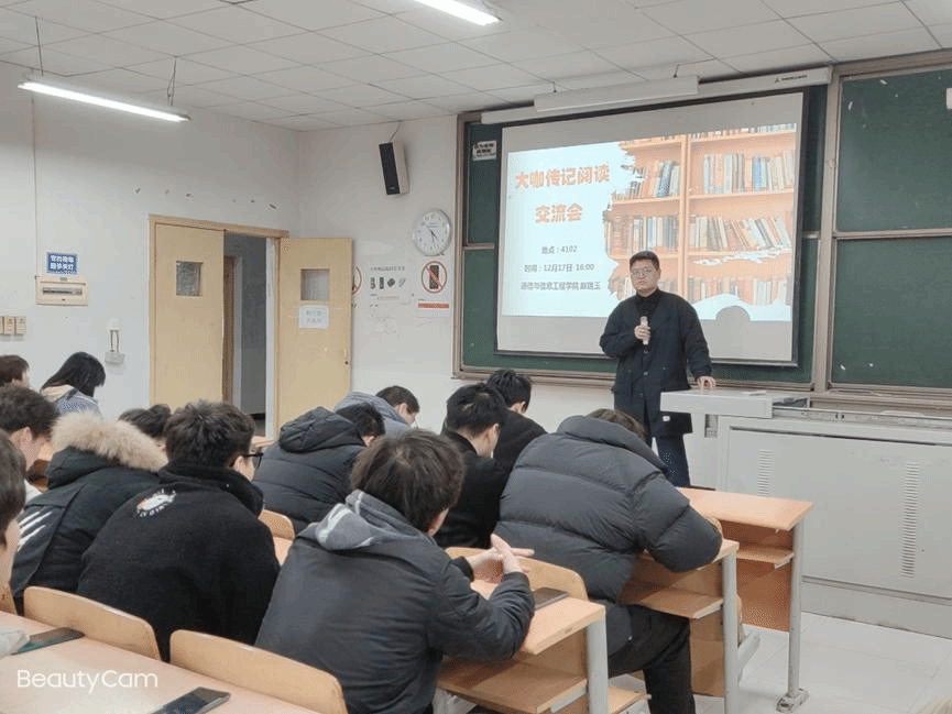 为培养同学们阅读的兴趣,拓宽学生视野,2021年12月17下午,通信与信息工程学院物联网工程专业志向1班和志向2班的同学们在指导老师赵瑞玉的组织下,在4102教室举行了“大咖传记阅读”交流会。