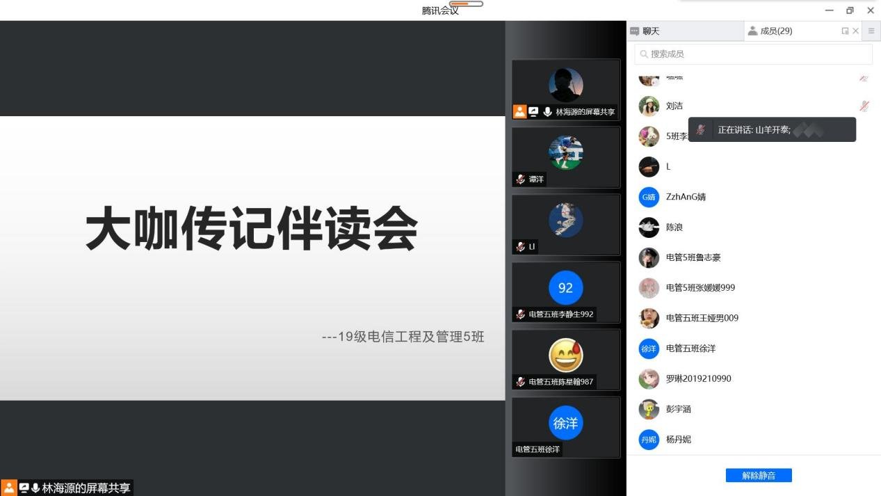 2022年3月25日,2019级电信工程及管理卓越五班进行了大咖传记伴读会,同时邀请了部分同学进行了阅读后的感想分享。