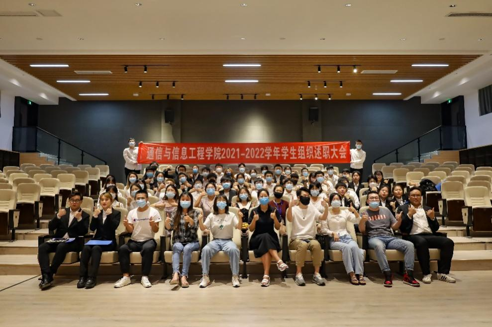 光阴似箭,日月如梭,通信与信息工程学院2021-2022学年第三届第三任学生组织述职大会于2022年5月31日在六度空间——创梦空间顺利召开,莅临本次大会的有通信与信息工程学院学工副院长何燕老师、团总支书记孙怡老师、学工办主任苏盼盼老师以及各版块的指导老师们。同时,因疫情原因和双校区新格局,很多老师和干部干事未能来到现场,所以本次述职大会也在“通通本通”抖音官方号进行全程直播,綦江校区线上参与观看。