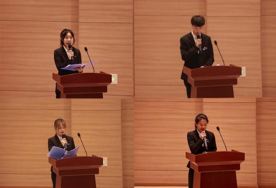 大会伊始,伴随《共青团团歌》的悠扬旋律,全体参会人员肃然起立,激情合唱共青团歌。随着歌声的结束,各版块书记与主席也相继对本学年的工作进行了细致的总结汇报,其中包含着一学年来的苦乐交织,工作的辛勤付出,经验的收获积累。在各位主席的总结汇报中,无不展现出在双校区模式下,学生组织工作开展的困境以及学生组织成员不惧困境,迎难而上的坚韧。即使相对上一学年,学生组织人员急剧减少,但依旧没有影响所有工作保质保量的出色完成。在大家的努力下,我院荣获“五四红旗团总支”、“优秀学生会”、“优秀青年志愿者协会”三项荣誉,这不仅是对学生组织工作的肯定,更是激励我们不懈奋斗,顽强拼搏的持久动力!