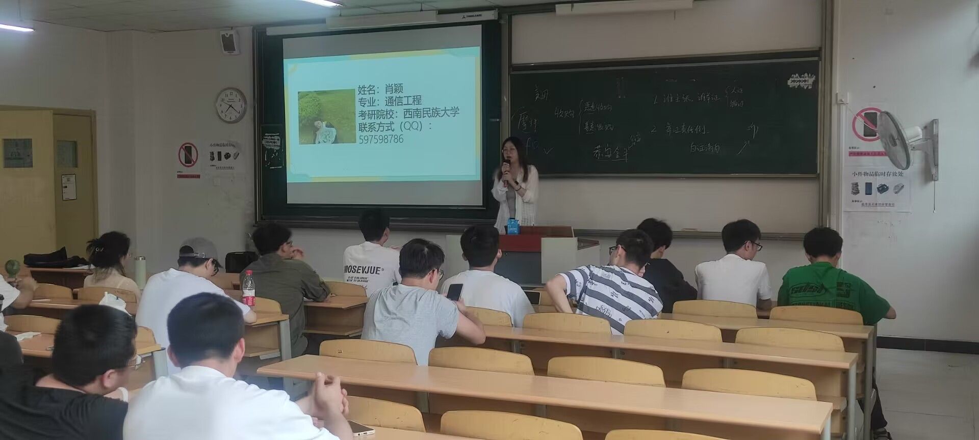 岁月不居,时节如流,一批批的同学们在毕业季时带着满满的收获离开校园,奔赴绚丽多彩的前程;厉兵秣马,未雨绸缪,更多的同学则正在默默积蓄能量,规划未来,以期毕业季前的华丽转身。为鼓励同学们明确并有效落实考公考研计划,避开考公考研中的一些“小坑”,通信与信息工程学院于5月31日中午在4教学楼4105开展了一场考公考研分享会,并邀请到了6位成功“上岸”的学长学姐来分享自己的宝贵经验,为同学们答疑解惑。