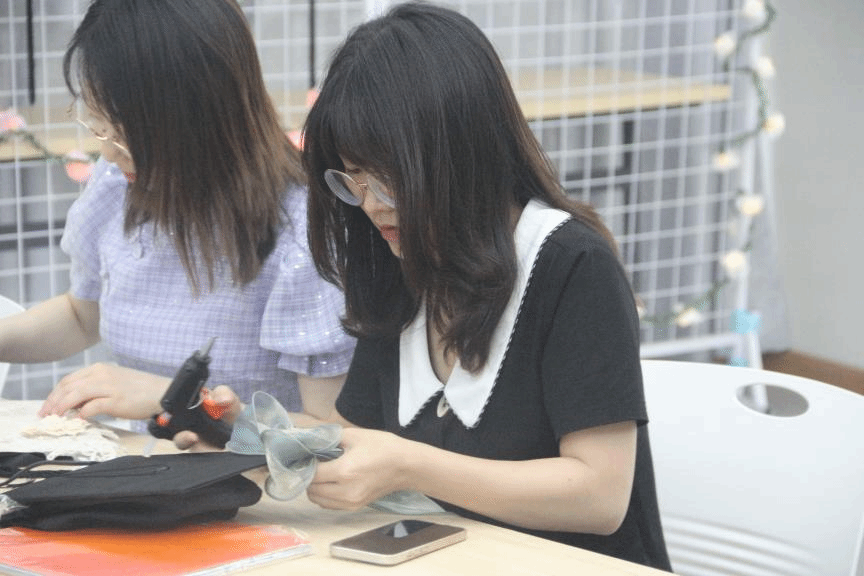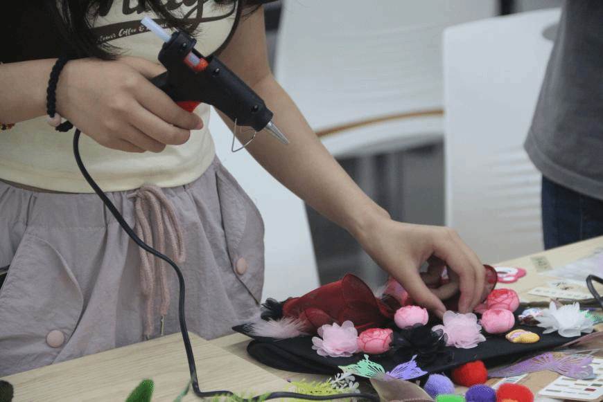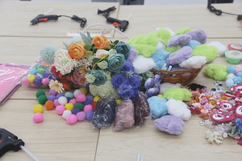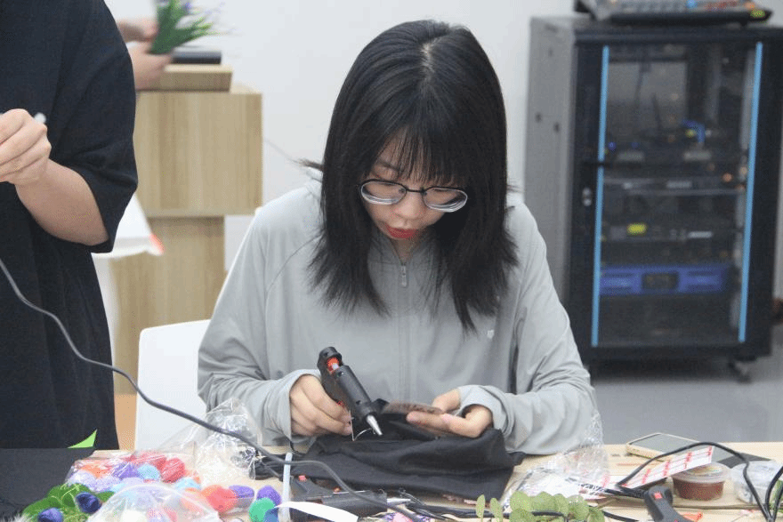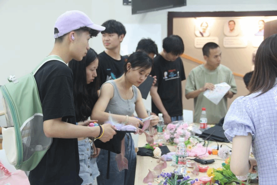 通信与信息工程学院为参与DIY创作的师生们提供了炫彩蝴蝶、手工仿真花、毛绒公仔、胸针、马卡龙羽毛、草莓熊、立体花朵等等各式各样的配饰和工具,为创作者提供了巨大的创作空间。从材料挑选到雕刻细节,在创意灵感和技巧实现之间不断调整,也让他们感受到了手工艺术带来的无限想象力。