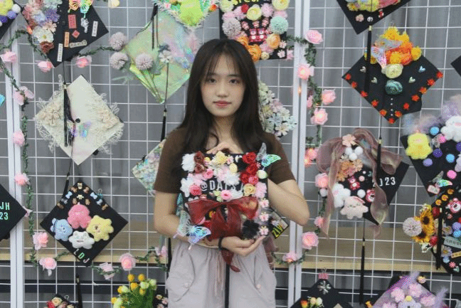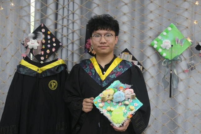 “从没有想到能有机会带上自己亲手设计制作的毕业帽,这种感觉真的很棒!4年完满生涯,我一直都在舞台上歌唱。没想到毕业前母校又给了我一次展示自我的舞台!”