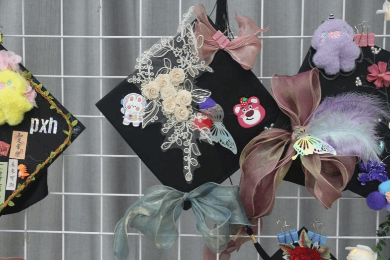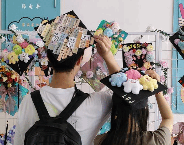 通过这些毕业帽的创作,同学们不仅展示出了他们的创意和想象力,而且通过色彩的巧妙运用,使毕业帽更能呈现出他们的个性和风格,为毕业典礼增添了更多的色彩缤纷。