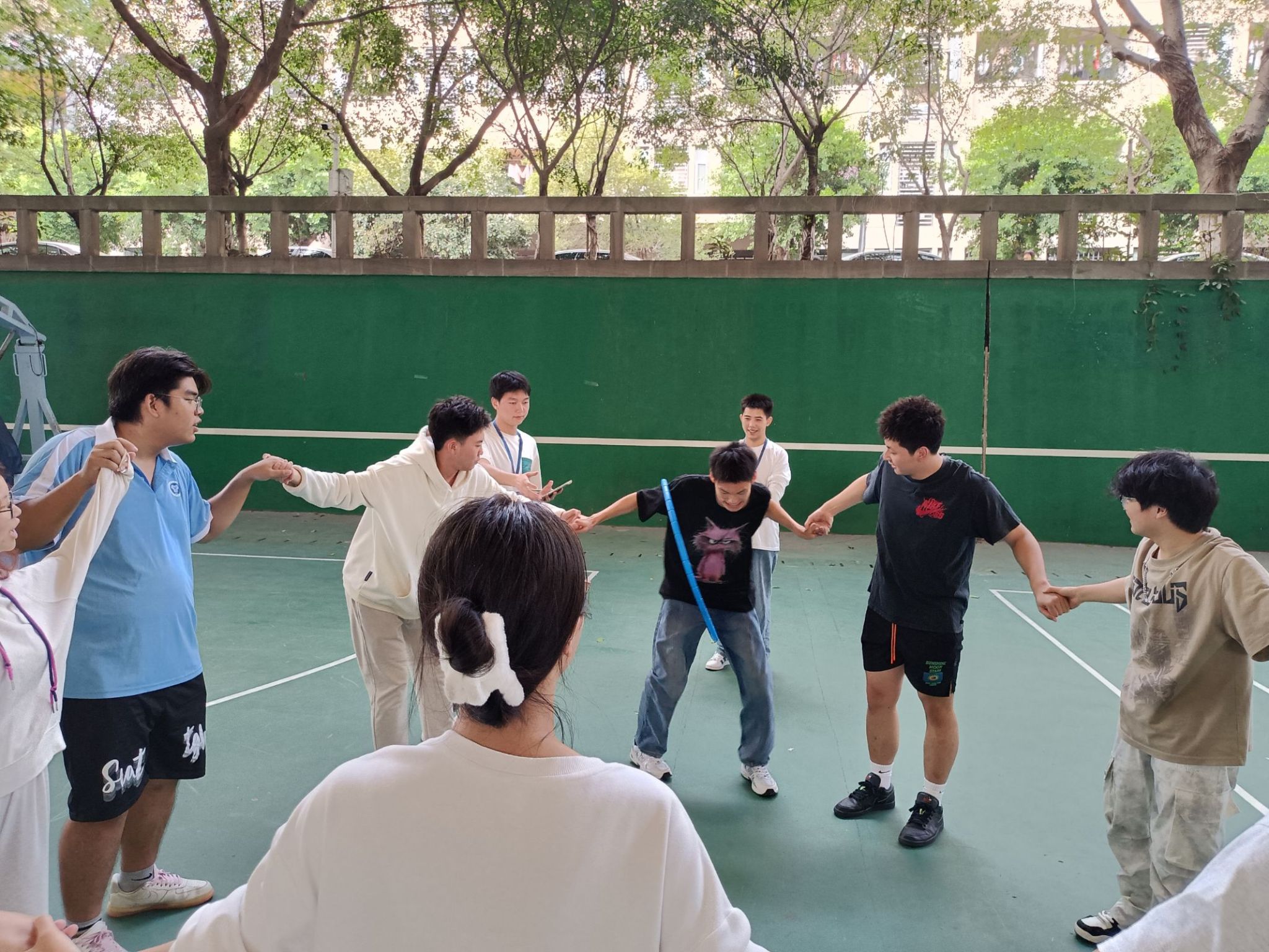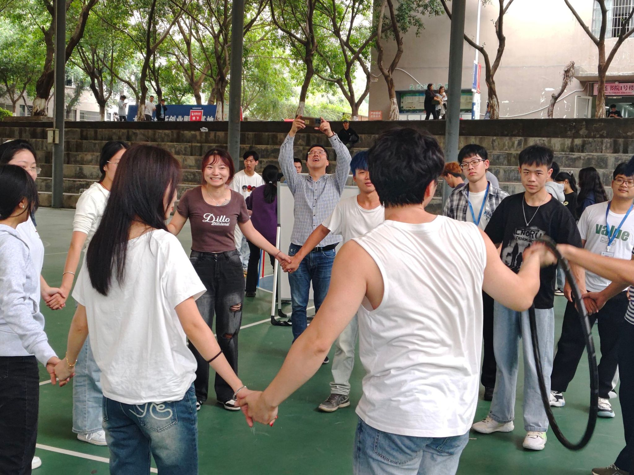 通过手拉手传递呼啦圈,老师与同学们在相互协作中增进了情感,同时也加深了彼此间的信任与了解。欢声笑语中,不仅促进了同学间的友谊,也增强了团队的凝聚力。这次活动再次印证了团结合作的力量,为参与者们留下了难忘的回忆。