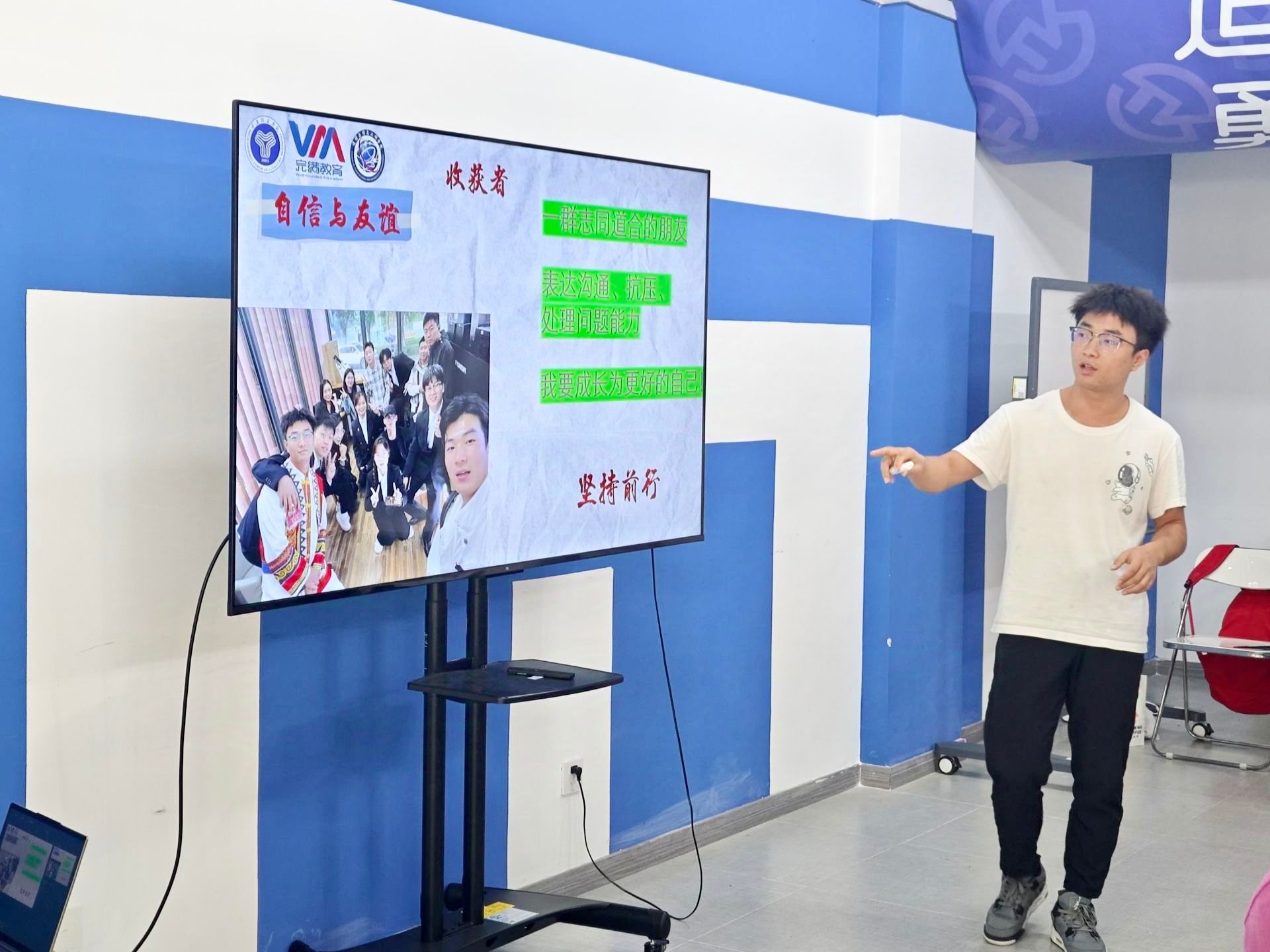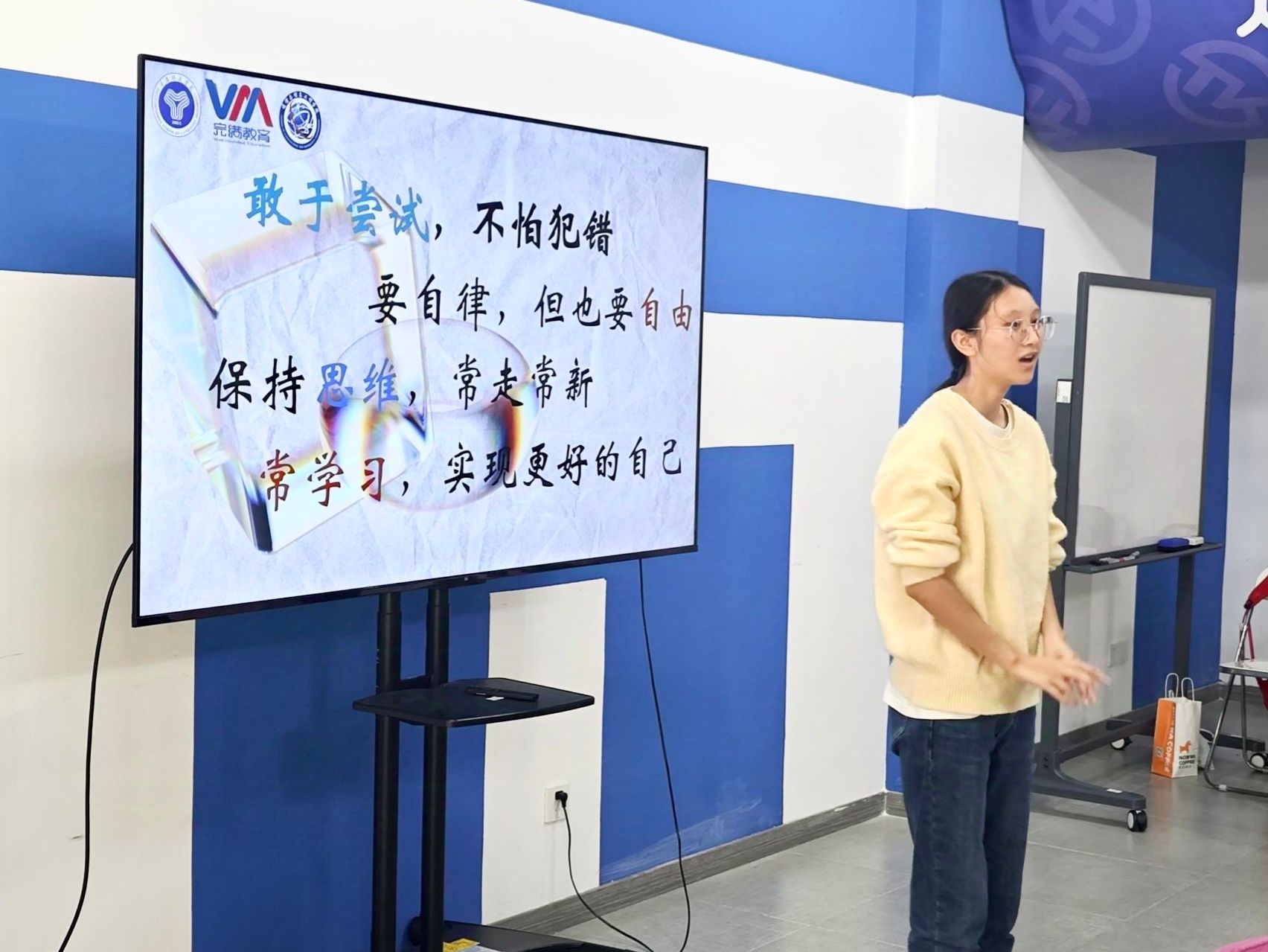 随后,肖进程学长以“梦想启航站:完满故事背后的成长攻略”为主题,通过幽默的段子“你觉得我现在紧张吗?”向同学们诠释了他在完满教育的熏陶和锤炼下,从懵懂青涩的新生到如今成熟稳重的学长,从遇事不知所措到如今的沉着冷静应对,从一个人孤身奋战到如今一个团队共同前进……肖进程学长的成功蜕变激励着同学们勇敢迈向新征程,并提醒同学们在参加完满教育活动的过程中,找寻人生奋斗的方向和目标,脚踏实地,终有一天会“守得云开见月明”。