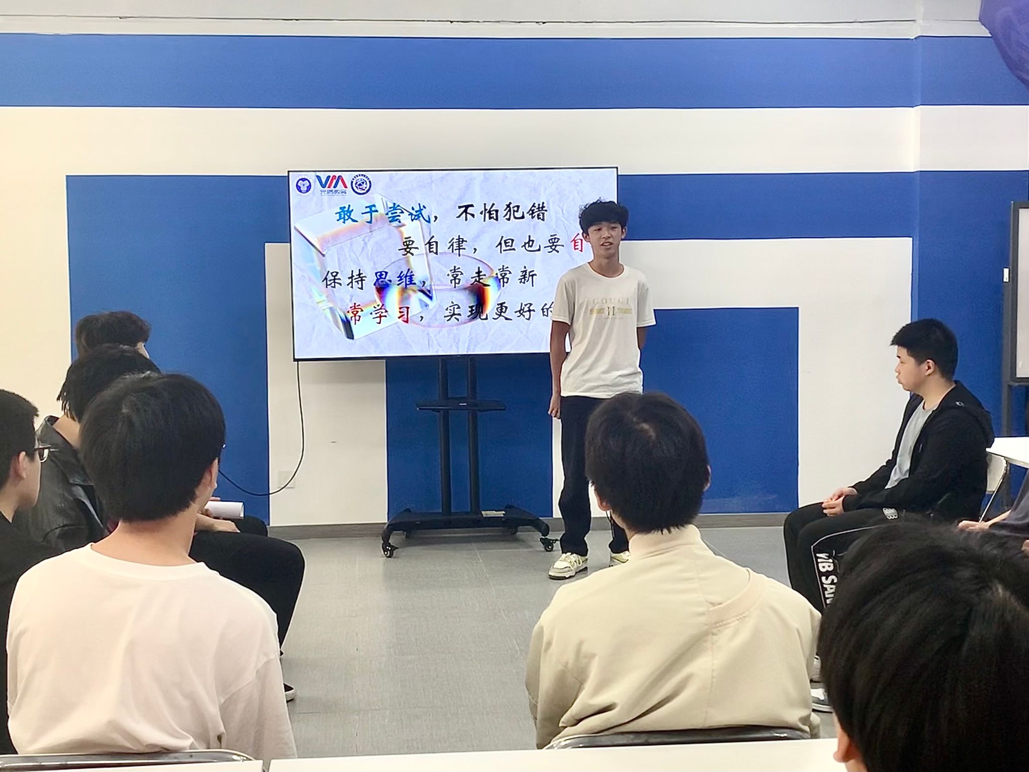 分享进入尾声,肖进程学长对刚步入大学生活的同学们发出殷切期盼“勇于尝试,不怕犯错”,并现场抽取了两位同学做一个简短的自我介绍。在肖进程学长幽默风趣的谈论氛围中,两位同学大方自信地向在坐的老师同学们介绍了自己,获得了老师同学们的热烈掌声和积极肯定。