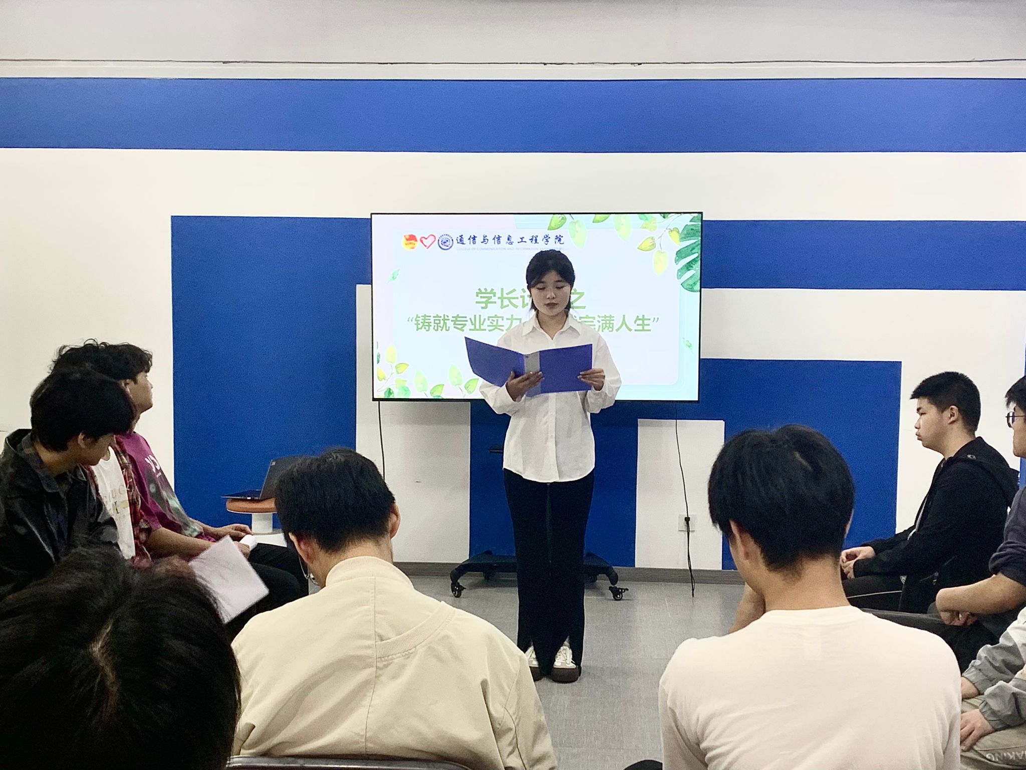 为了提升学生们的专业能力,培养学生们的专业素养,创造完满人生。重庆移通学院通信与信息工程学院特邀石景瑶学姐和肖进程学长,于2024年10月25日在天空书院青空朋辈畅谈室圆满开展了一场关于《铸就专业实力,成就完满人生》为主题的线下经验分享交流会。