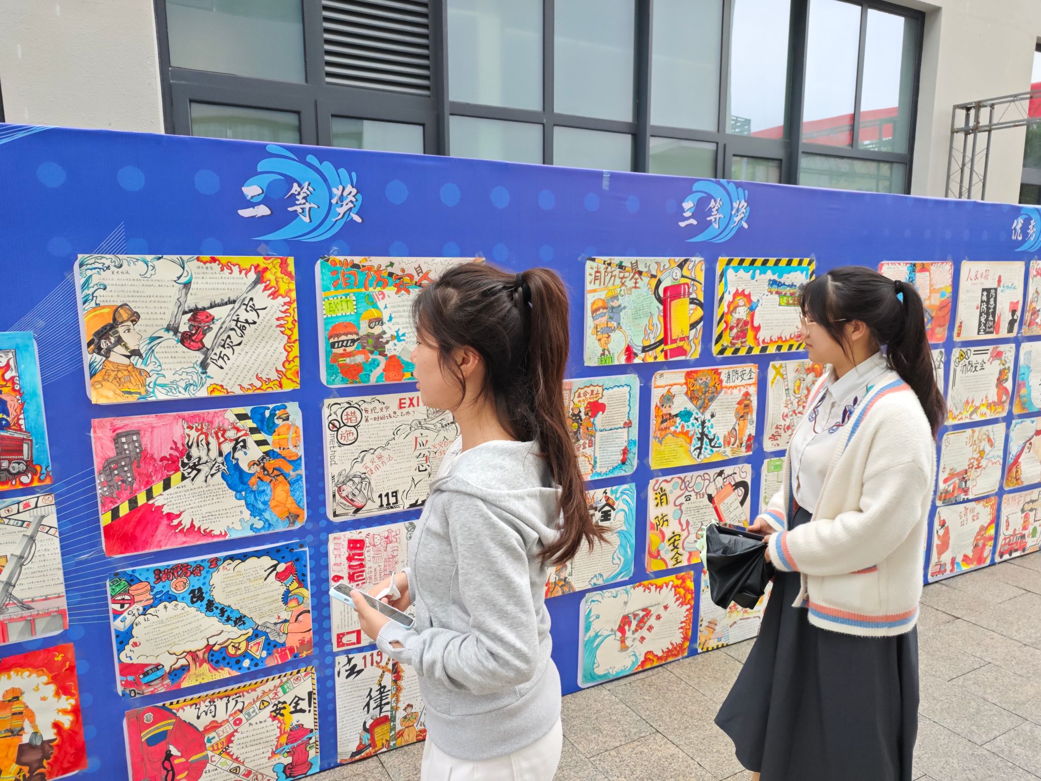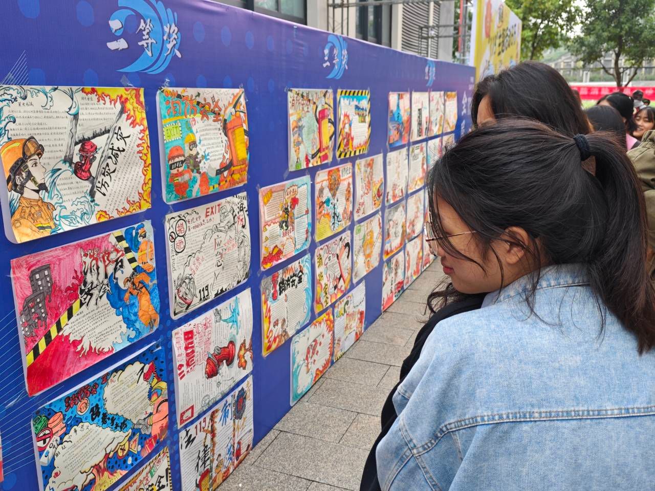 11月5日,綦江区2024年“119”消防宣传月开幕式正式启动,在大剧院门前,一幅幅优秀手抄报悄然绽放,宛如阴天里的一抹亮色。欣赏的同学们或凝神细赏,或轻声赞叹,脸上洋溢着对创意与才华的敬佩。纸墨间,一笔一划皆是情,每一幅作品都仿佛在低语,讲述着它们背后的故事与灵感。空气中,不仅有纸张的清新,更有同学们对美好事物的共鸣与向往,让这个瞬间,定格成校园里一道独特的风景线。