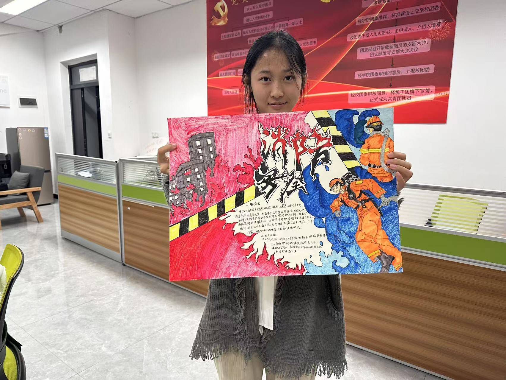 10月29日到11月1日,一场围绕消防安全主题的创意活动如风暴席卷而来。本次活动,无论是孤胆英雄的单打独斗,还是智囊团队的并肩作战,都希望参与者绘制出心中的消防安全画卷。参与者们都满怀热忱地投入到绘制中,他们巧妙地将消防车、灭火器、烟雾报警器以及消防员英勇救火的场景融入画中。每一笔、每一划都透露出对消防安全知识的深刻理解与重视,通过色彩与线条的交织,一幅幅既美观又富有教育意义的手抄报跃然纸上。这些手抄报不仅展现了同学们的创意与才华,更成为了传递消防安全知识、提升公众安全意识的重要载体。参与者们在黑夜中查找资料、不断更改、不停的赶工,当作品完成后,同学手里拿着作品站在镜头前时,或者局促不安,或者气宇轩昂,但那一抹微笑是一定发自内心的喜悦吧!