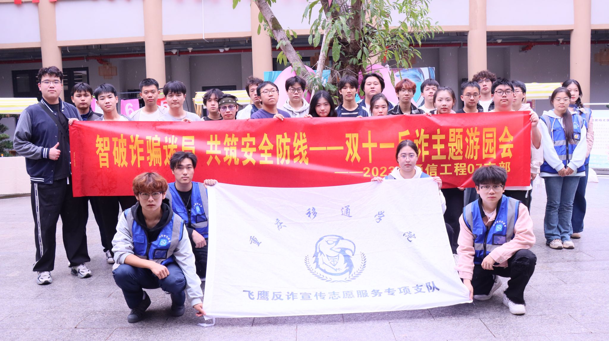 在当下这个数字化高速发展的时代,诈骗手段不断翻新,让人防不胜防,给广大消费者带来了严重的财产损失和心理压力。为了增强同学们的反诈骗意识,提升防范能力,2024年11月8日,由通信与信息工程学院2023级通信工程07支部与“飞鹰”反诈支队联合举办“智破诈骗迷局,共筑安全防线”主题宣传活动——双十一反诈主题游园会在观云书院中庭圆满举行,累计参与人数100余人。