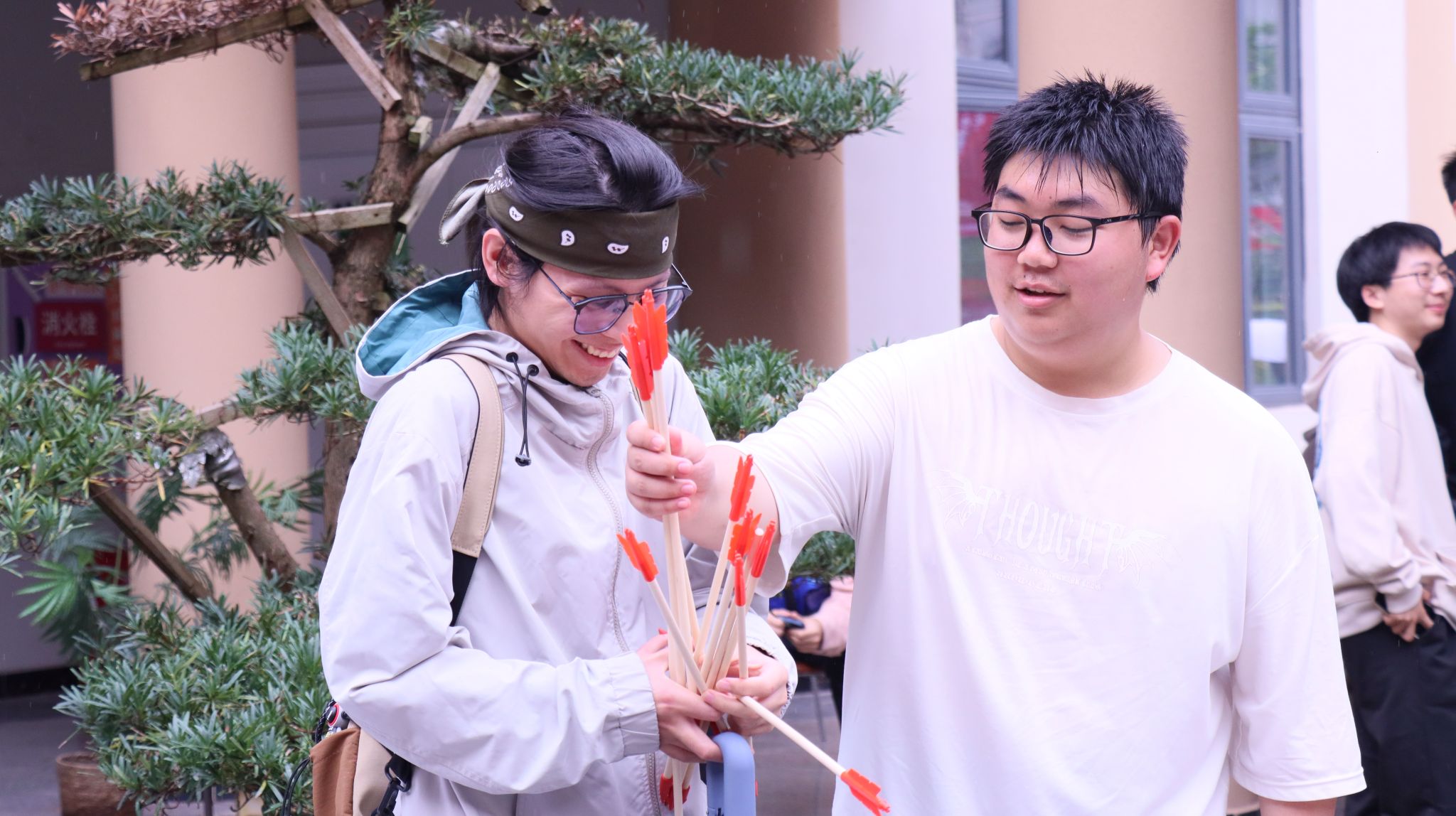 投掷线之外,向投壶投射,壶中为安全范围,飞跃的箭是被骗者们对外的求助。每人有三个“箭矢”,三次机会投中一次即可成功“得救”。活动的趣味,更多的是让参与者在轻松愉快的氛围中增强了反诈骗意识。