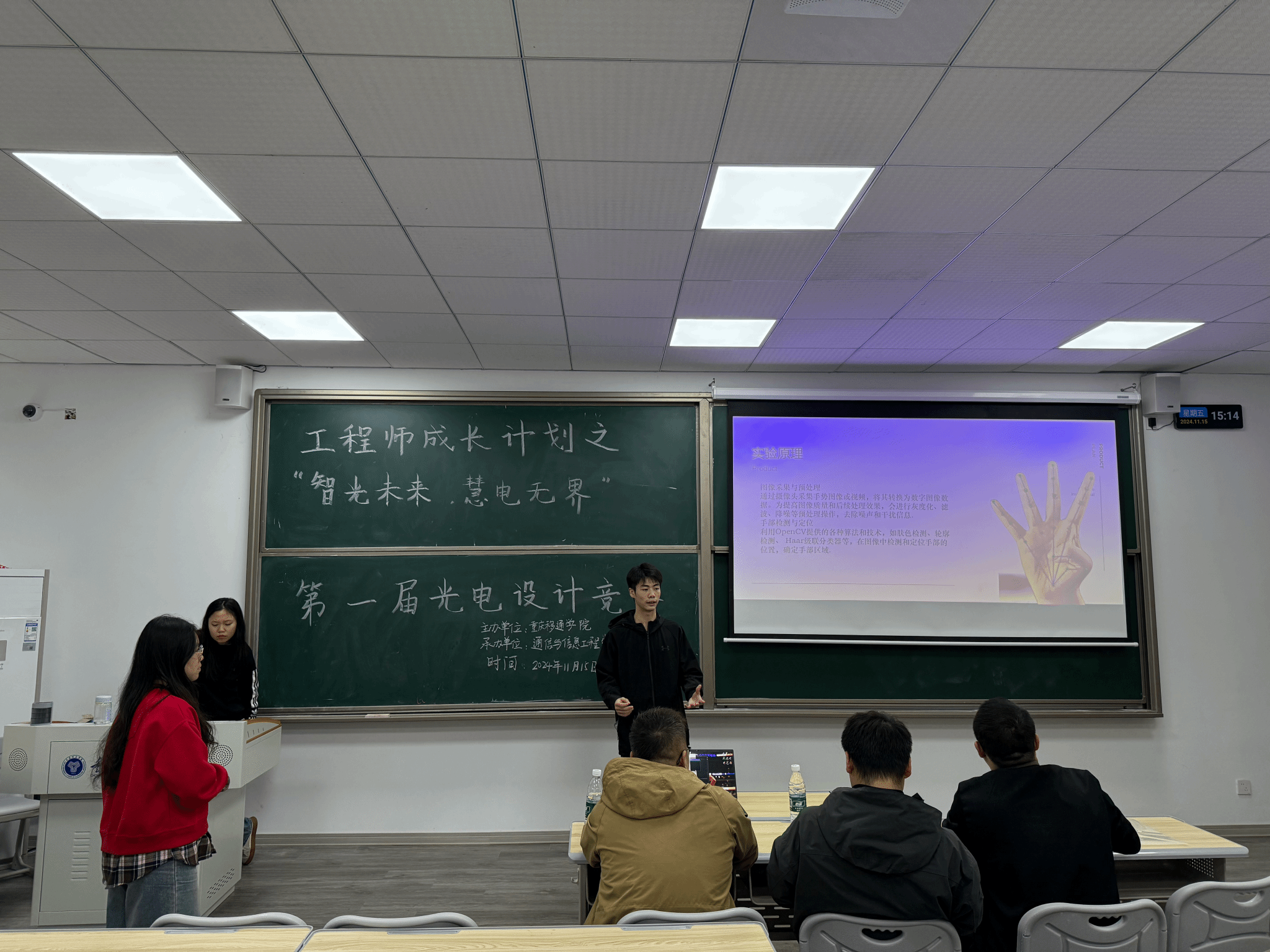 为了进一步推动广大学生参与科技类竞赛活动,提高学生团队协作水平,培育大学生创新创业精神,使其拥有创新思维、敢于创业的勇气以及激发大学生探索、应用、创新、创造新技术的热情,促使他们在光电领域积极钻研,由重庆移通学院主办,通信与信息工程学院学生会承办的工程师成长计划之“智光未来,慧电无界”第一届光电设计竞赛于2024年10月30日下午三点如期开展!本次经前期报名、中期准备、后期成品制作和测试答辩,历时半月于11月15日圆满结束。