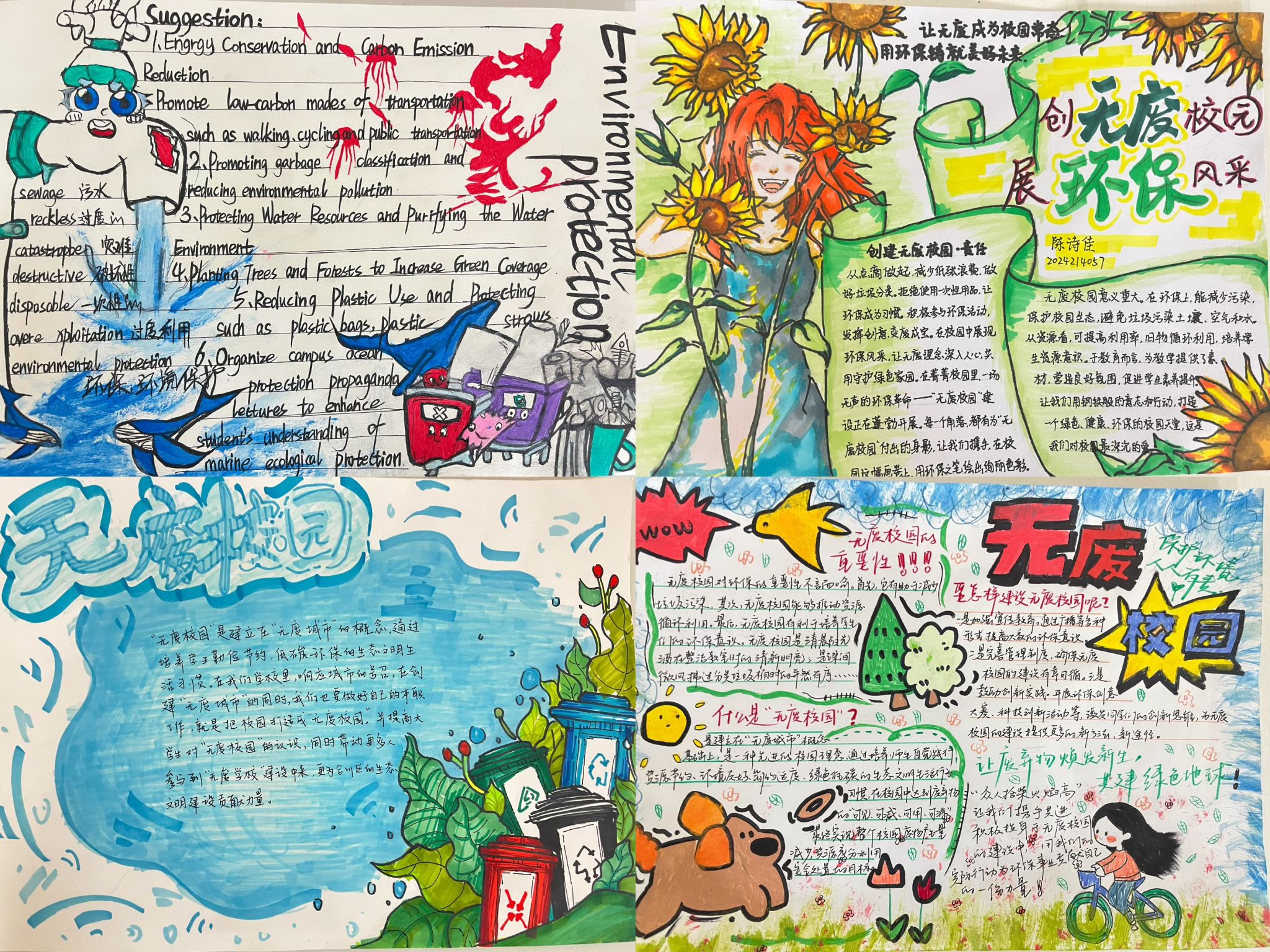 从垃圾分类的小知识到节能减排的生活小贴士,从绿色出行的倡议到生态平衡的维护,同学们用图文并茂的形式,生动展现了环保的多样面貌,激发了环保意识与责任感,那些创意独特、意义深远的优秀作品它们不仅赢得了荣誉,更在校园里播撒下了环保的种子,激励着更多人加入到“创无废校园”的行动中来。