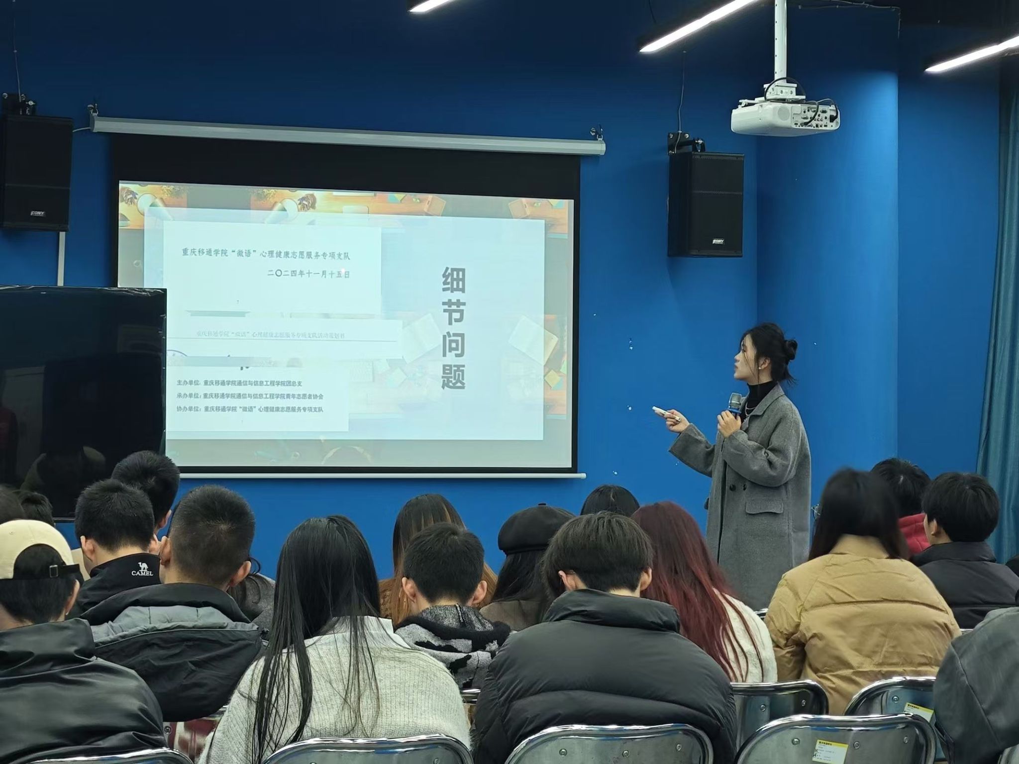 主持人在介绍活动背景与主题后,紧接介绍了本次培训的特邀嘉宾——来自“微语”心理健康志愿服务专项支队的支队长张苏琪学姐。张苏琪以其丰富的志愿服务经验和深厚的策划功底为同学们娓娓道来。在她的引领下,培训班成员们仿佛进入了一个全新的世界,开始了一场关于策划艺术的探索之旅。