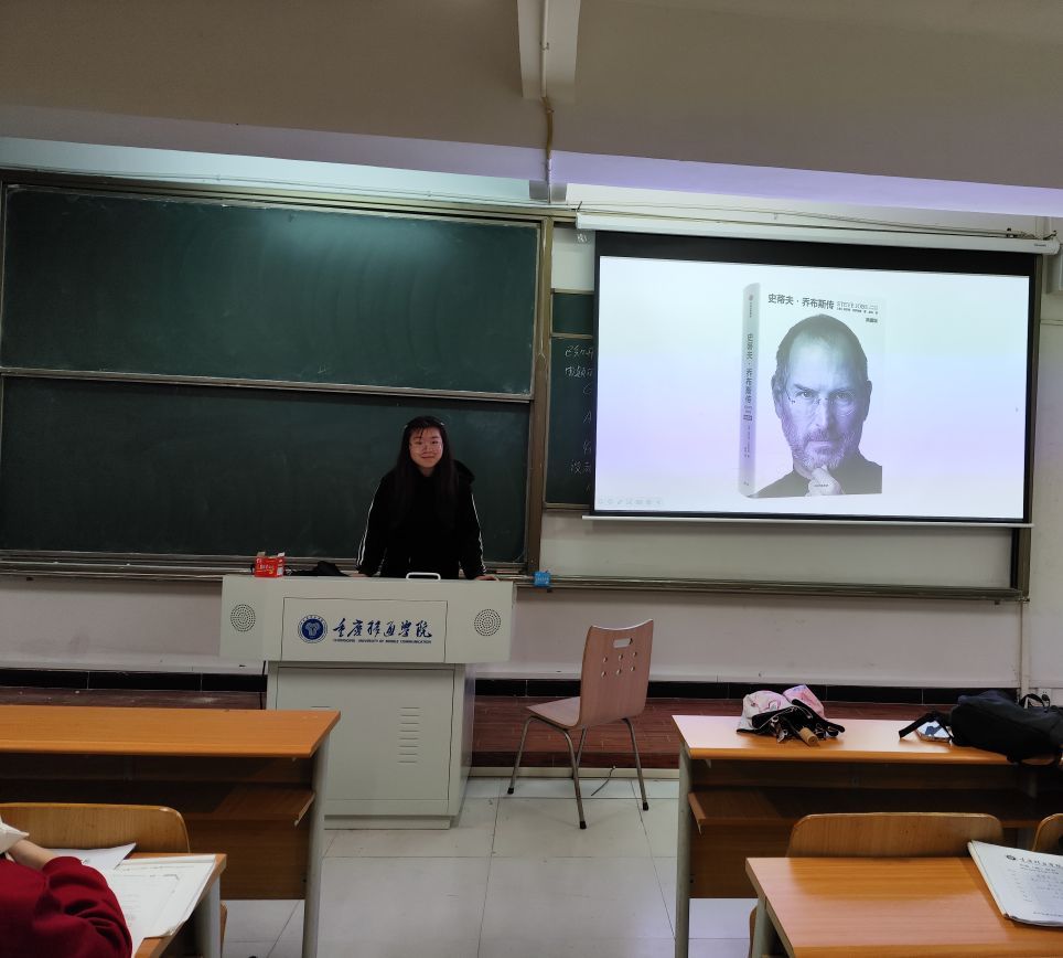 二组的学生代表王欢感慨地说:“《史蒂夫·乔布斯传》让我看到了创新与坚持的力量。乔布斯对产品极致的追求,不畏失败的勇气,深深影响了我。我决心在学习和生活中,也要追求卓越,不断突破自我。”同时王欢同学也鼓励在场的同学们在今后学习的过程中要无畏困难,勇攀高峰,这才是时代去青年人。
