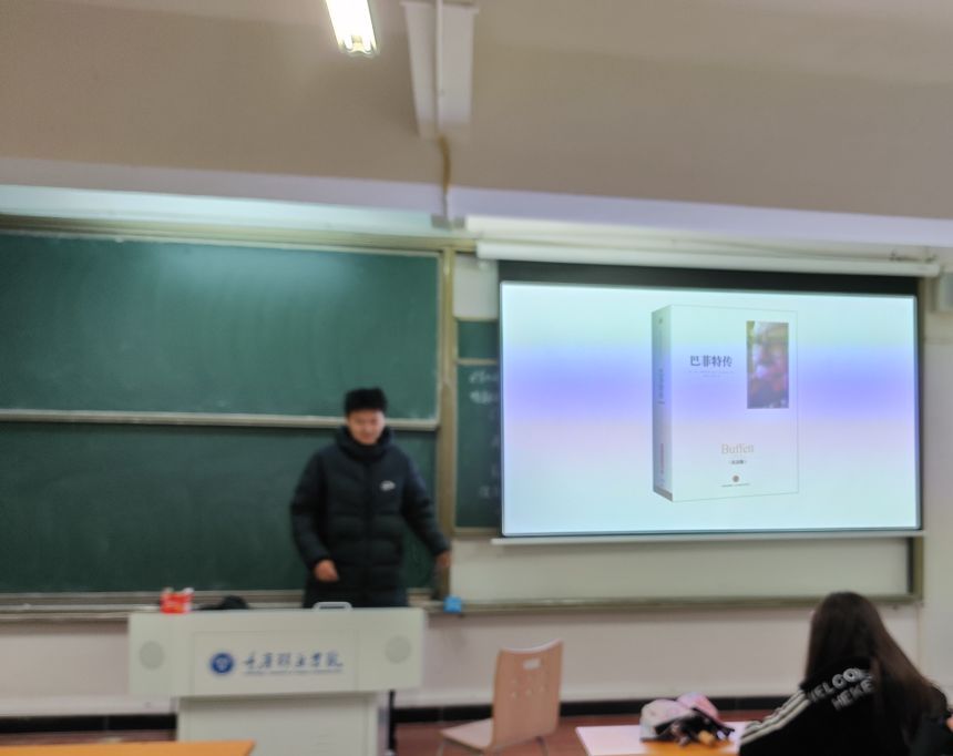 三组的学生代表杨阳紧接着发言,他满怀激情地分享了阅读《巴菲特传》的心得。杨阳说:“《巴菲特传》不仅是一部投资巨擘的成长史,更是一本关于智慧、耐心与坚持的教科书。巴菲特先生的一生,是对‘长期价值投资’理念的最好诠释。他教会我,真正的成功不在于短期的暴利,而在于长期稳健的增长。这本书让我意识到,无论是学习还是生活,我们都应有长远的眼光,学会在喧嚣中寻找宁静,不被眼前的浮躁所迷惑。巴菲特先生的故事激励着我,让我更加明白,持之以恒的努力和对目标的坚定信念,才是通往成功的不二法门。我坚信,只要我们能够像巴菲特先生那样,保持冷静的头脑,坚守自己的原则,未来必将属于我们。”杨阳的发言,让同学们为之一振,让大家对阅读名人传记有了更深层次的理解。