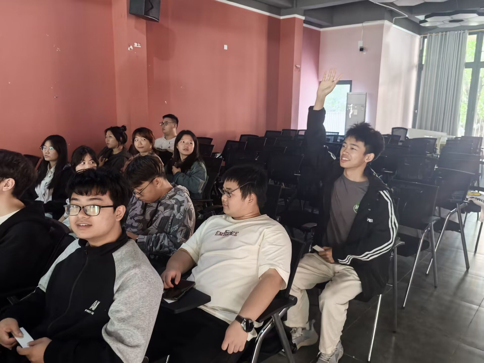 诗词是中华文化的瑰宝,是中华民族最珍贵的文化遗产之一。主持人通过“飞花令”的形式让同学们根据给出的一个字,说出含有这个字的诗句。在活动中,同学们热情高涨,纷纷积极举手回答问题。他们沉浸于诗词的世界,悉心领会诗人巧妙融合意象与诗句的高超技艺,深刻体悟诗词独特的意境之美与韵律之美,仿佛穿越时空,与古人在文学的天地里进行了一场心灵的对话。