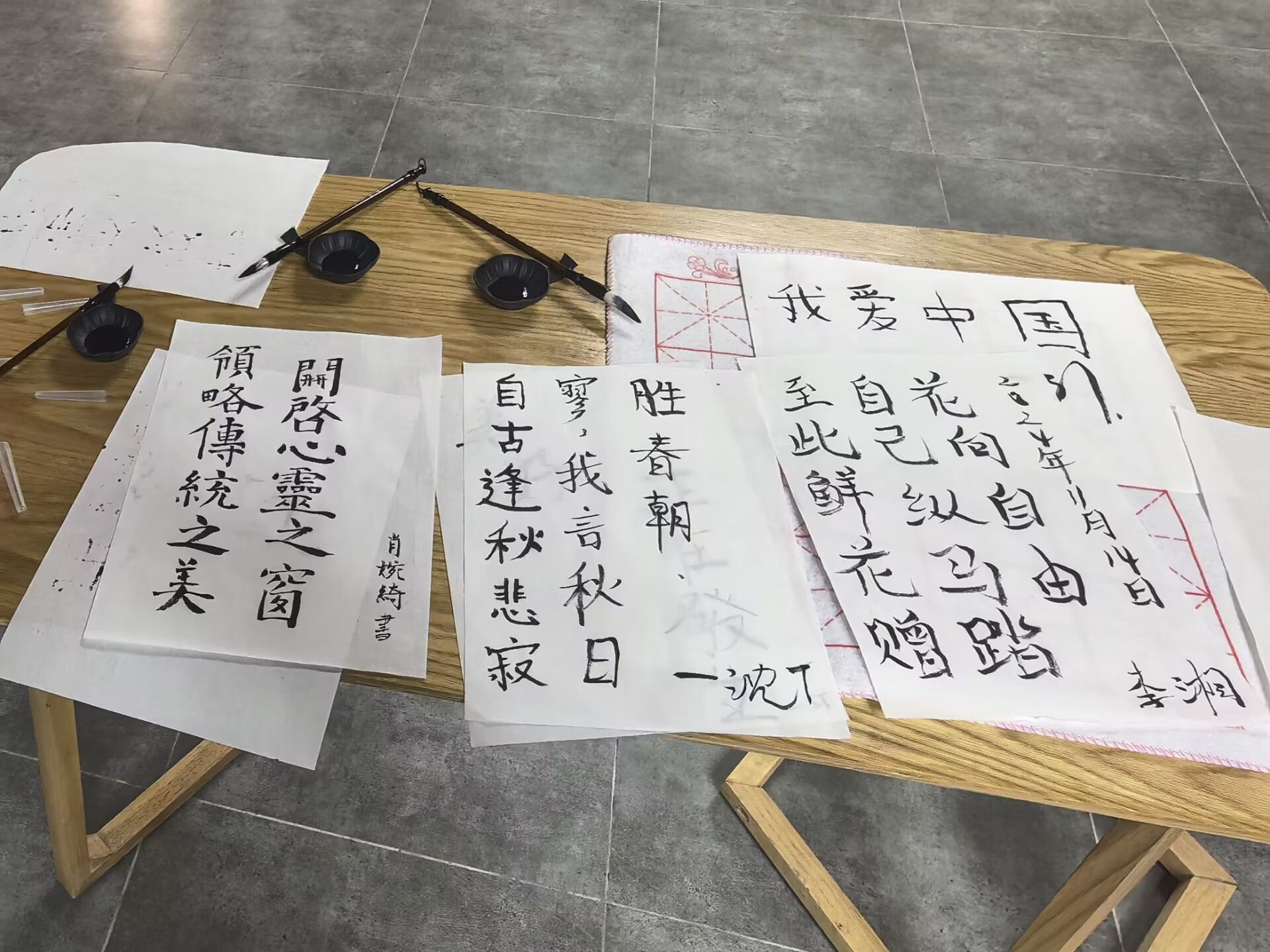 书法是中国传统文化的核心艺术之一。同学们先是通过赏析《兰亭集序》、《洛神赋》等名家之作,领略了书法之美,感受其艺术风格、笔法技巧,提升审美。再观看《祭侄文稿》的纪录片,深入了解作品背后故事、文化价值,同学们都感触颇深,纷纷挥洒着笔墨,书写出心中豪情,体会着传统书法的美妙韵味。