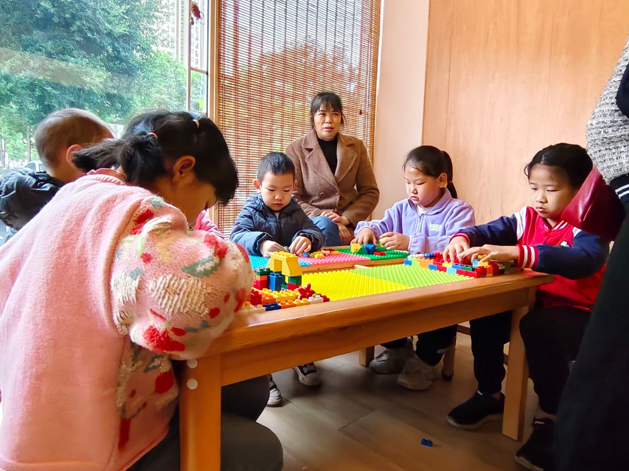 最后,在“心灵交融,共话成长”活动中,支部同学为小朋友们创造了一个“放松小天地”,布置了柔软地垫和毛绒玩具。孩子们在这里放松心情,被五颜六色的积木吸引,兴奋地参与其中。志愿者们引导孩子们,鼓励他们培养团队合作精神。