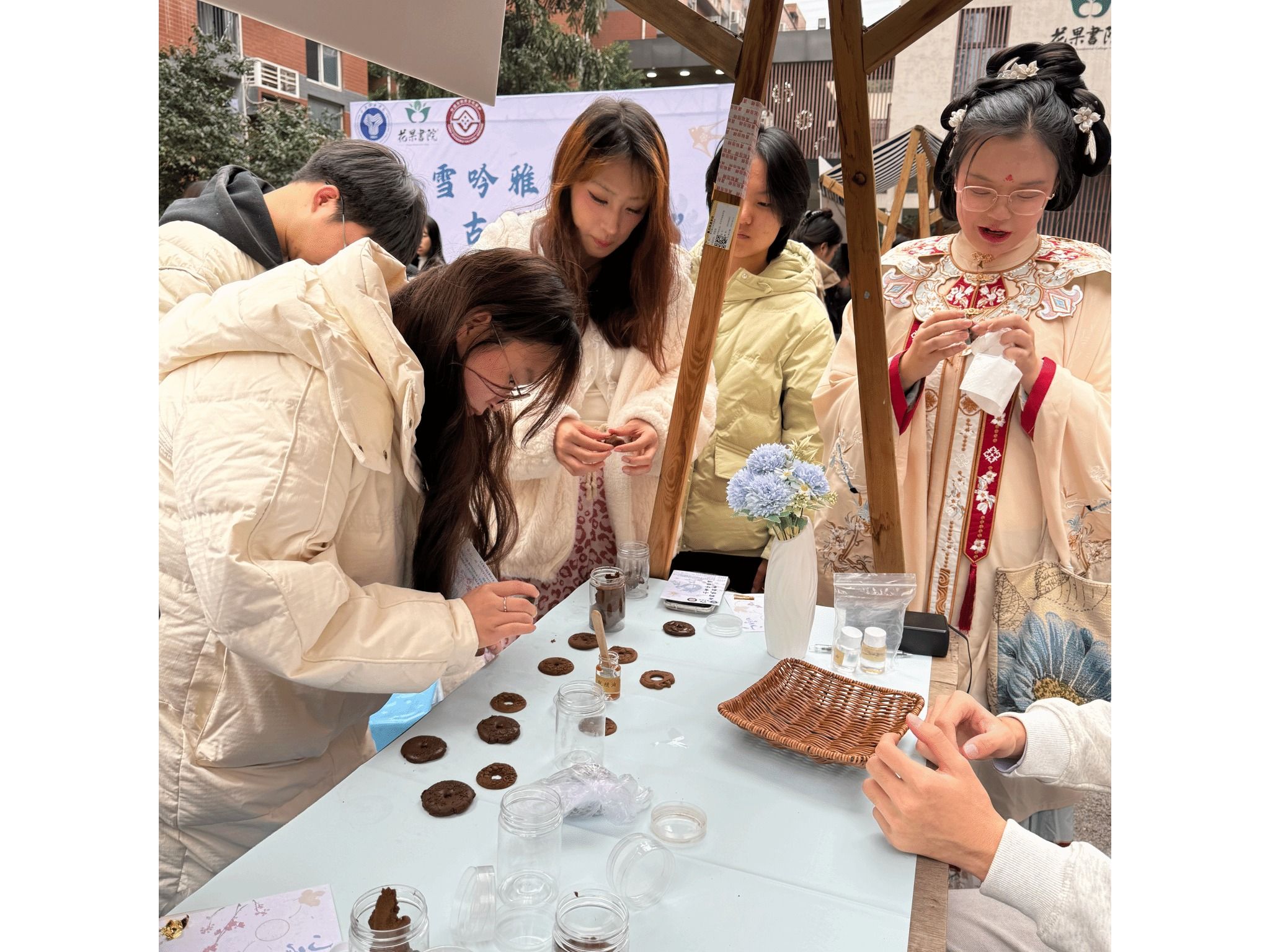 2024年11月22日15时,2024级通信工程08支部联合花果书院在花果书院小广场开展了以“小雪吟雅颂,古韵赋新章”为主题的完满超级团支部活动。同学们可以在非遗拓印、香囊、剪纸、香牌、烧箔等活动中体会到传统手工艺的魅力,于节气中体会自然时序之变。通过这些活动,不仅让同学们深入了解了小雪等节气的文化内涵,感受其独特魅力,更提升了同学们的文化自信和民族自豪感。