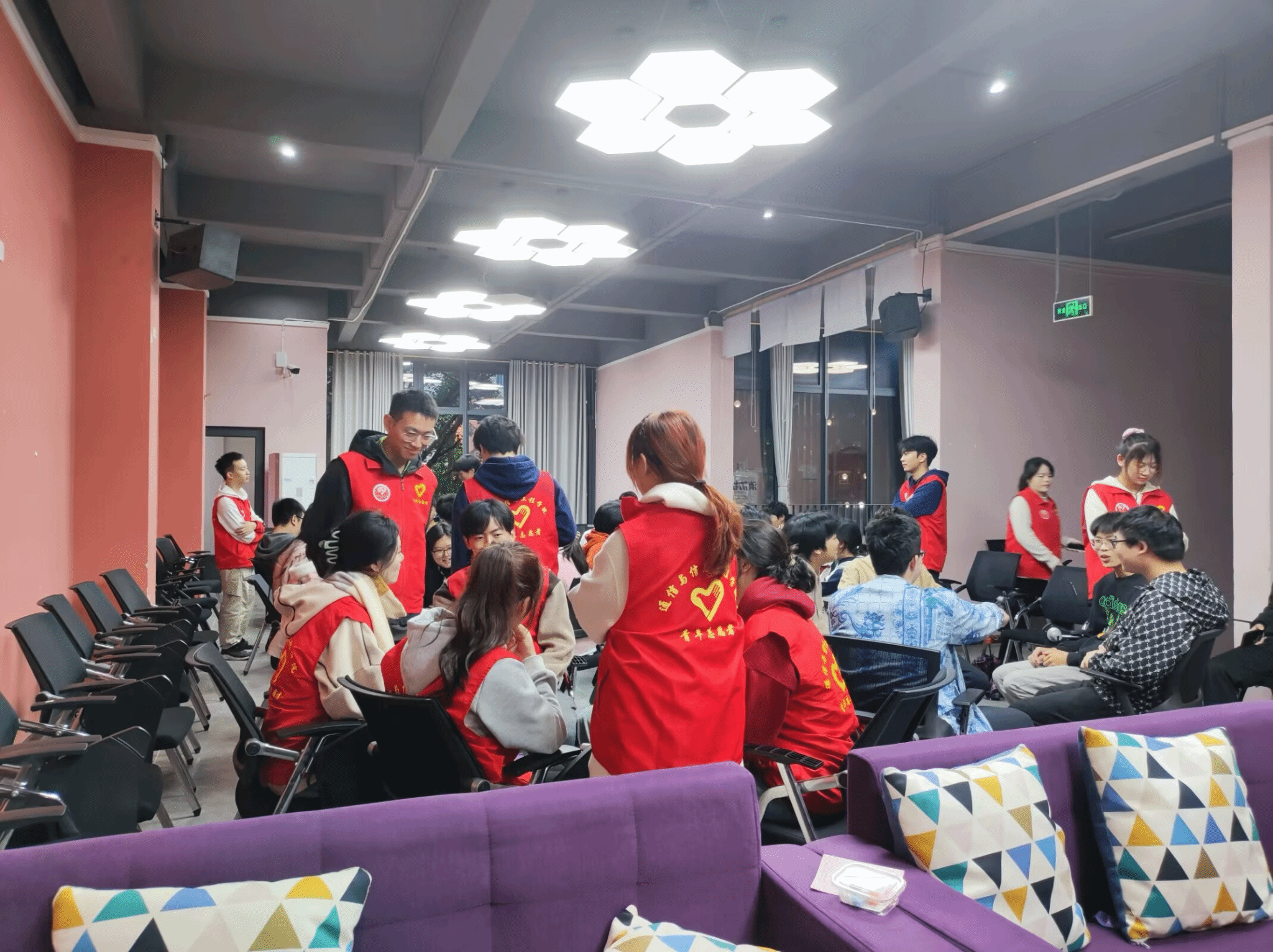 2024年11月19日12点30时,2024级电信工程及管理专升本01支部携手“微语”心理健康志愿服务专项支队在天空书院不局促书屋开展了以“慧眼识骗局,安全在我心”为主题的完满超级团支部活动。通过此次“以花之名,暖晚秋心灵”心理健康类活动,让同学们了解自己的内心世界,掌握如何维护和提升心理健康的技巧和方法,如何正确对待内心的喜怒哀乐同时也展现大学生活的多彩面貌,丰富了多彩的校园文化内涵,促进同学们的心理健康发展。
