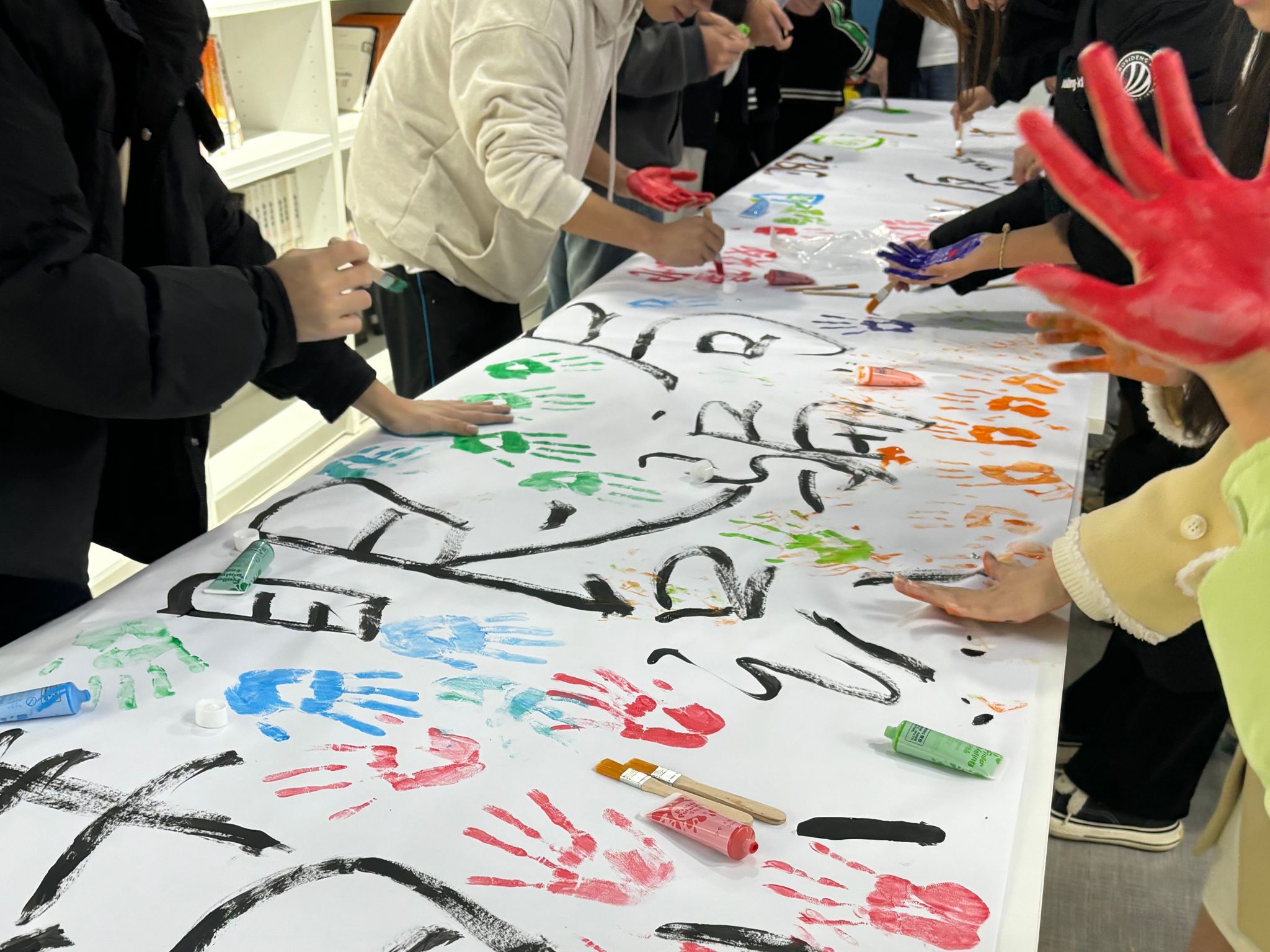 最后,同学们在一幅巨大的画卷上共同挥洒画笔。这一刻,画笔化作抵御诈骗的有力武器,通过艺术这一媒介,向诈骗的恶行宣战。反诈的种子,已然在同学们的心间生根发芽。与此同时,大家在光影交错的时刻,用相机捕捉下这一美好瞬间,仿佛施展了将短暂时光永久定格的魔法。