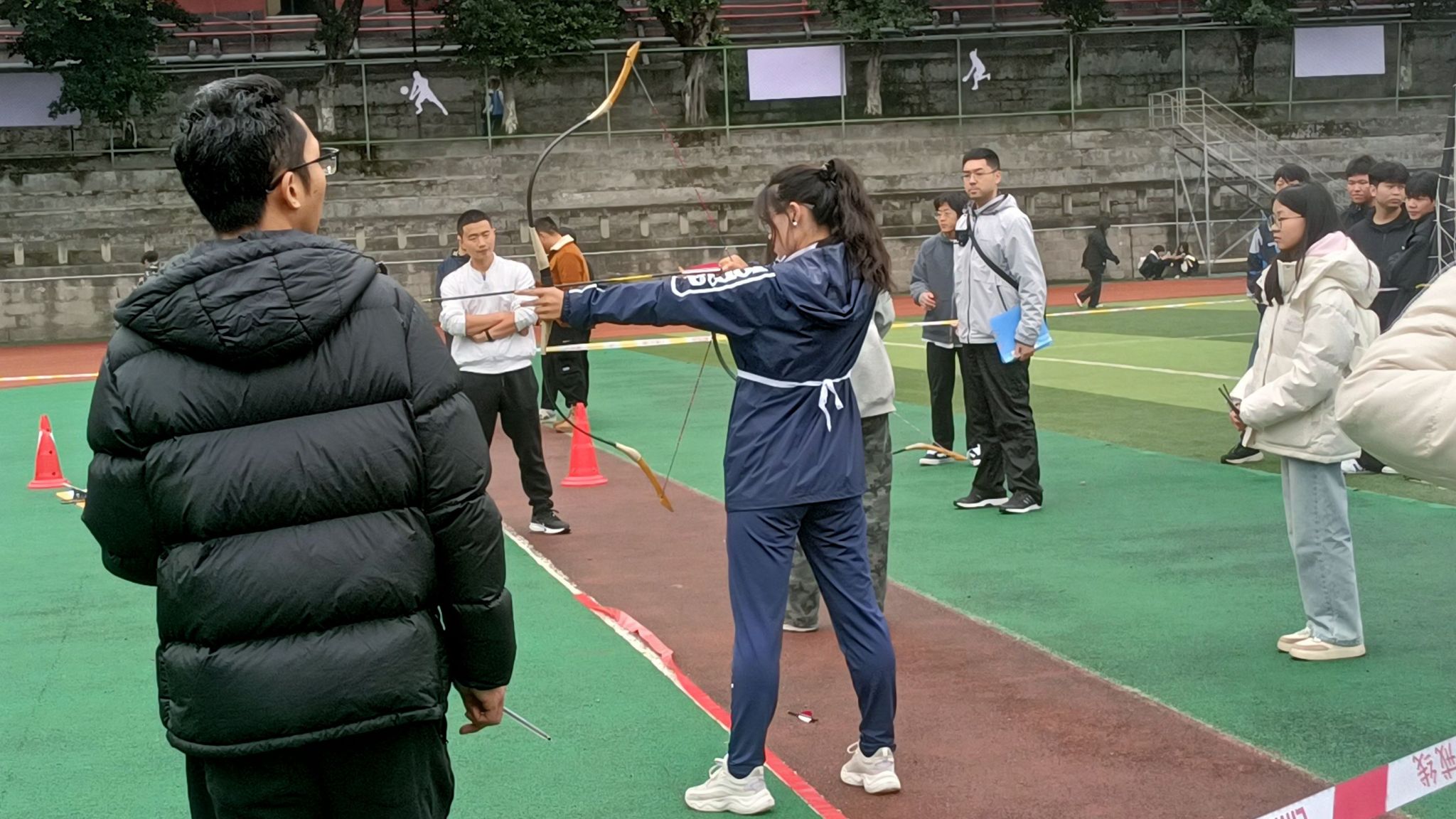 通信学子轻抚特制弓身,纹理镌刻民俗印记。拉弓发力时,坚毅神情透壮志,矢志所往,是对技艺尊崇、对传统赓续。此项目通信学子表现亮眼,凭借出色发挥荣获本场第二。