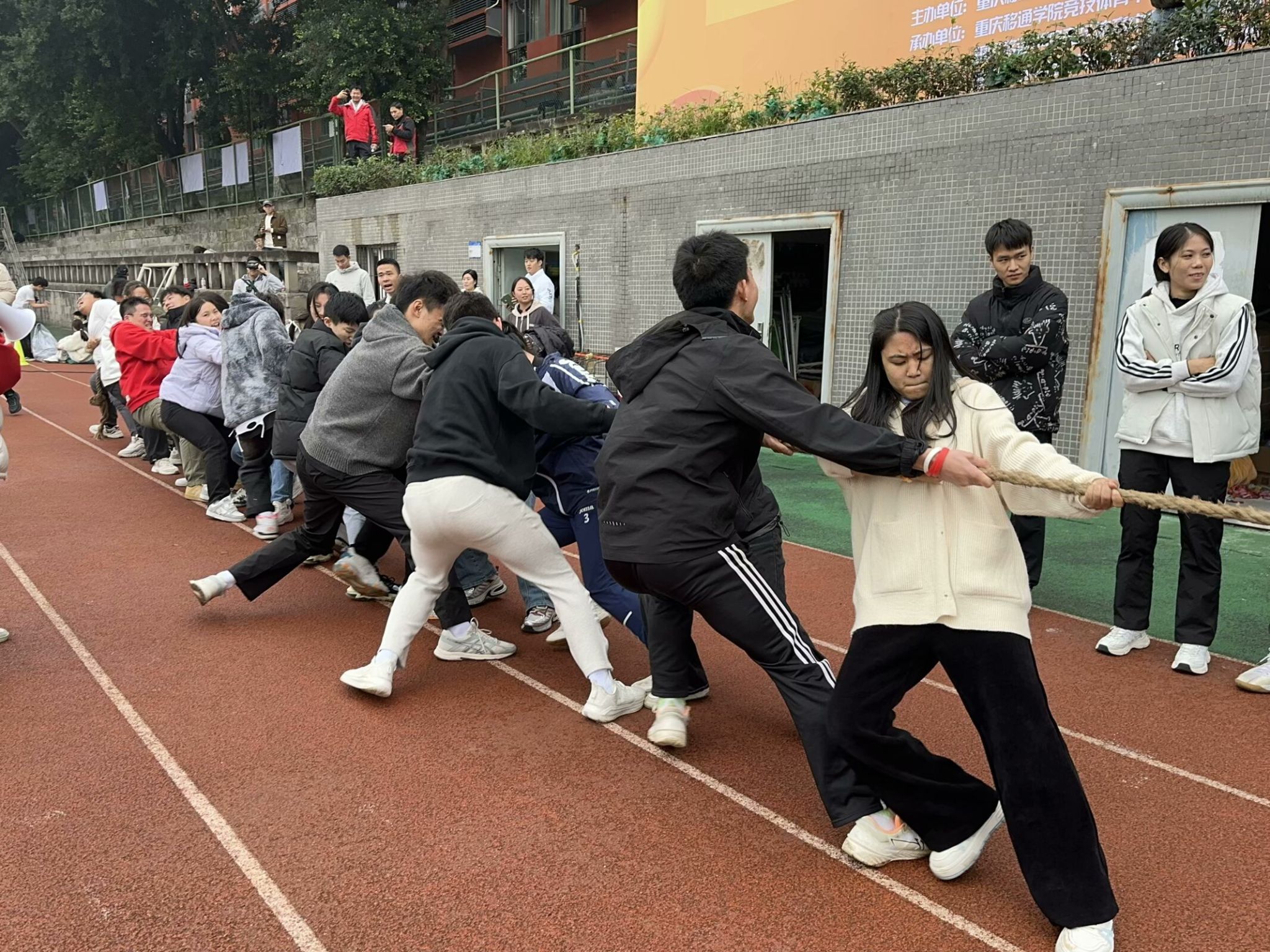 赛场上,那根粗壮拔河绳似纽带,串联起通信学院健儿。他们双手紧握、脚掌蹬地,肌肉紧绷、目光坚毅。每一次奋力拉扯,皆汇聚各位参赛队员的磅礴之力,伴随震天呐喊,将团结一心的热忱凝于绳间,拔动的是向胜利奋进、共筑情谊的赤诚之心,通信学子团结一致取得此项目二名。