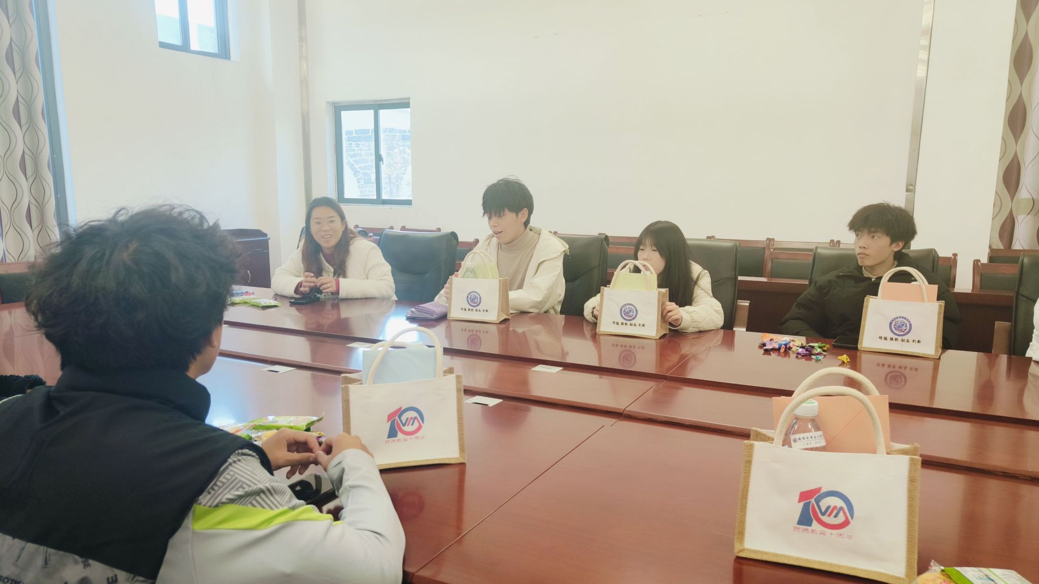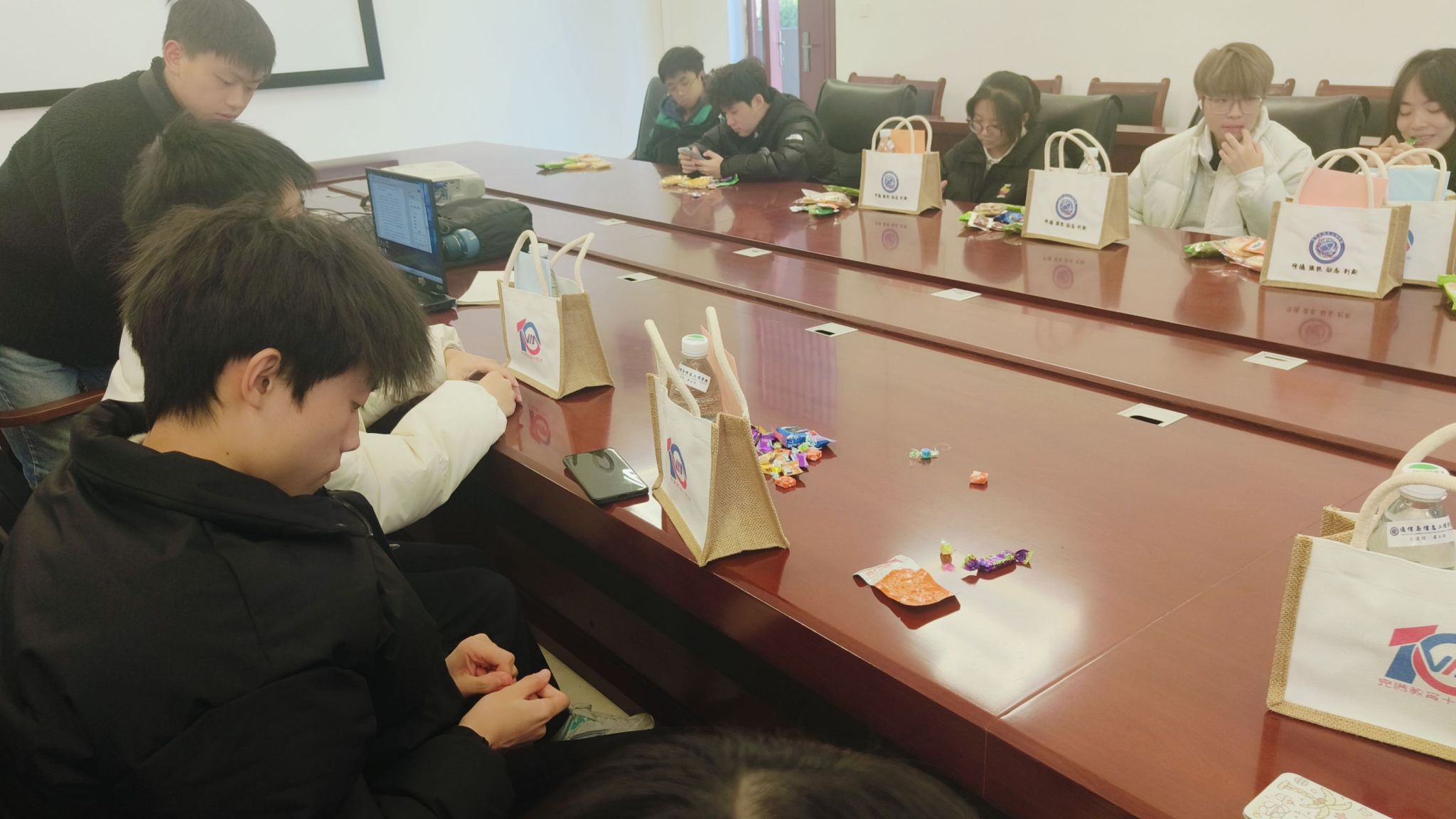 在积极交流合作的热潮中三院外联部成员齐聚一堂。通信与信息工程学院为两院部门准备了一份小小的礼物。其中包含了一罐可栽培的植物种子,它的结果拥有无限的可能就像我们三院的合作虽然刚萌也同样有无限可能。智能工程学院与外国语学院为大家提供了多种零食,大家坐在一起倾心交谈着工作。