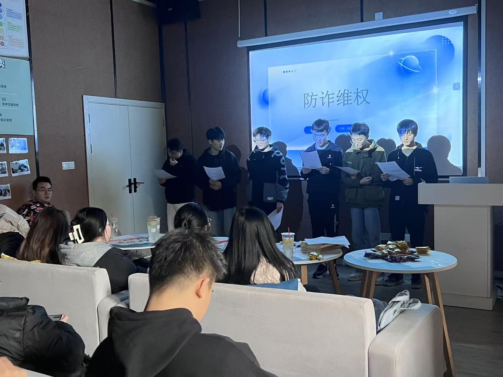 为提升班级团支部自身建设,建立特色团支部,提升团支部素质,2024年11月22日12:30,2024级通信工程专升本07支部在鱼城书院空格影音室进行了以“筑起防诈长城,守护维权之路”为主题完满超级团支部活动。
