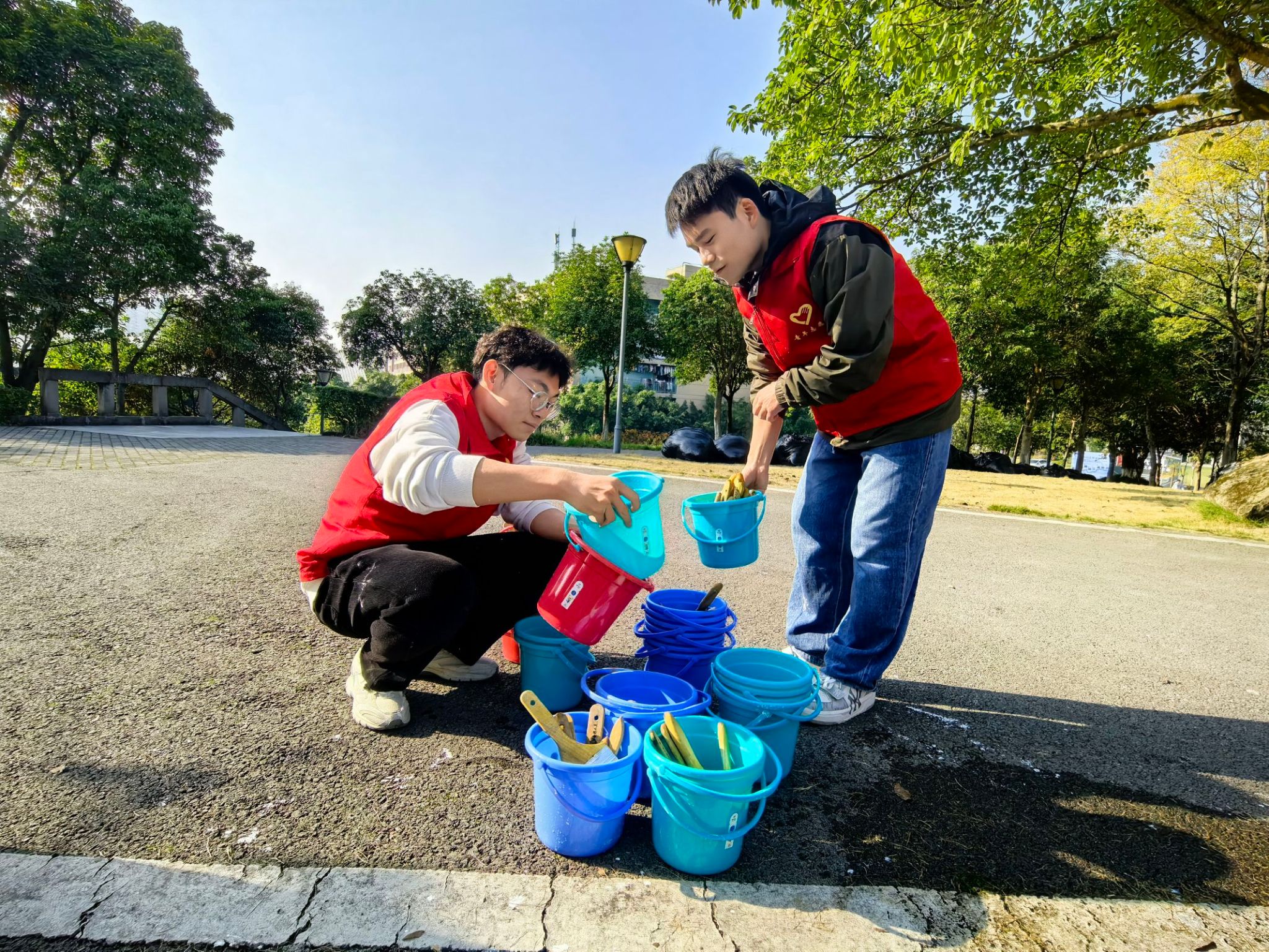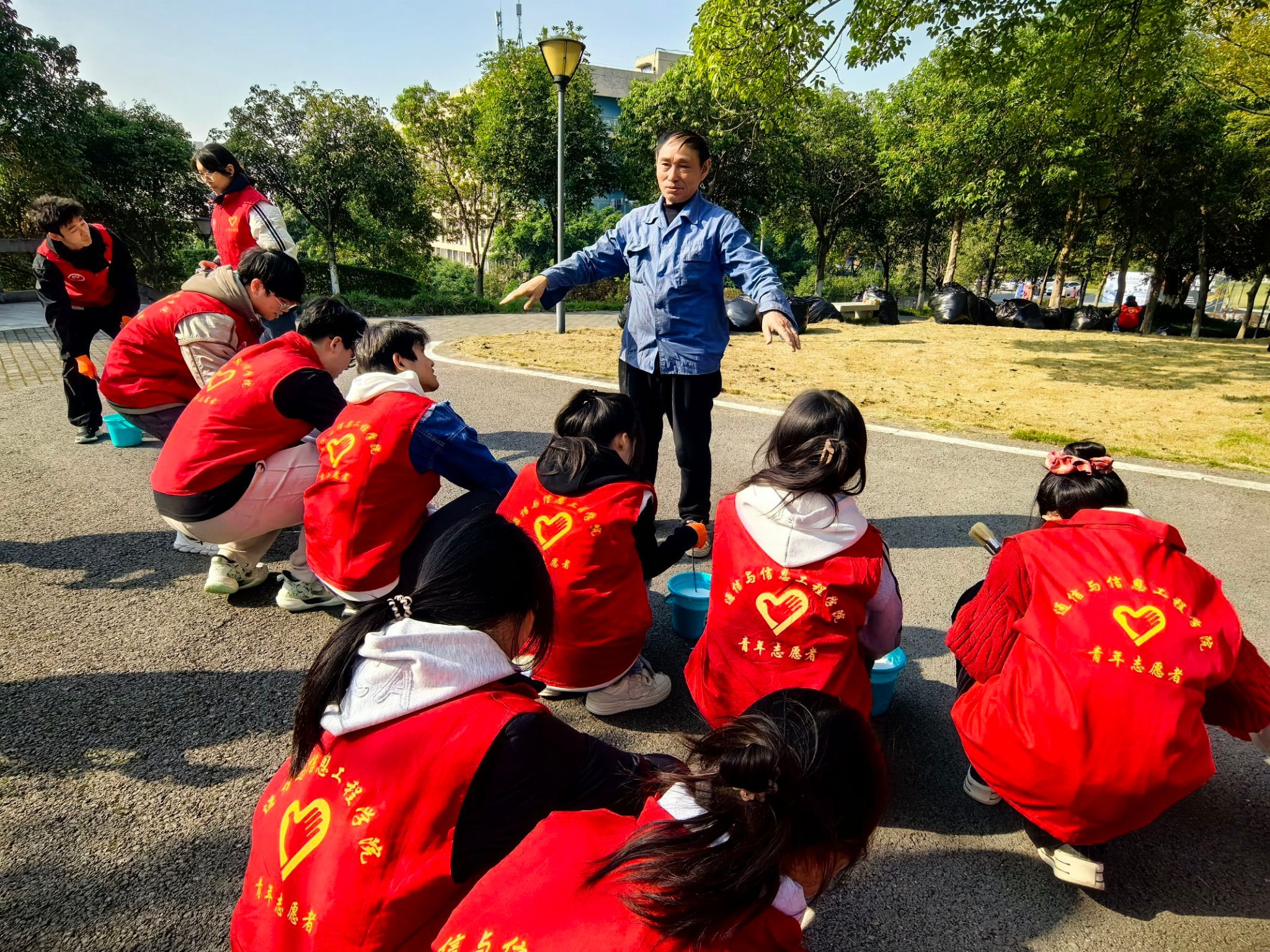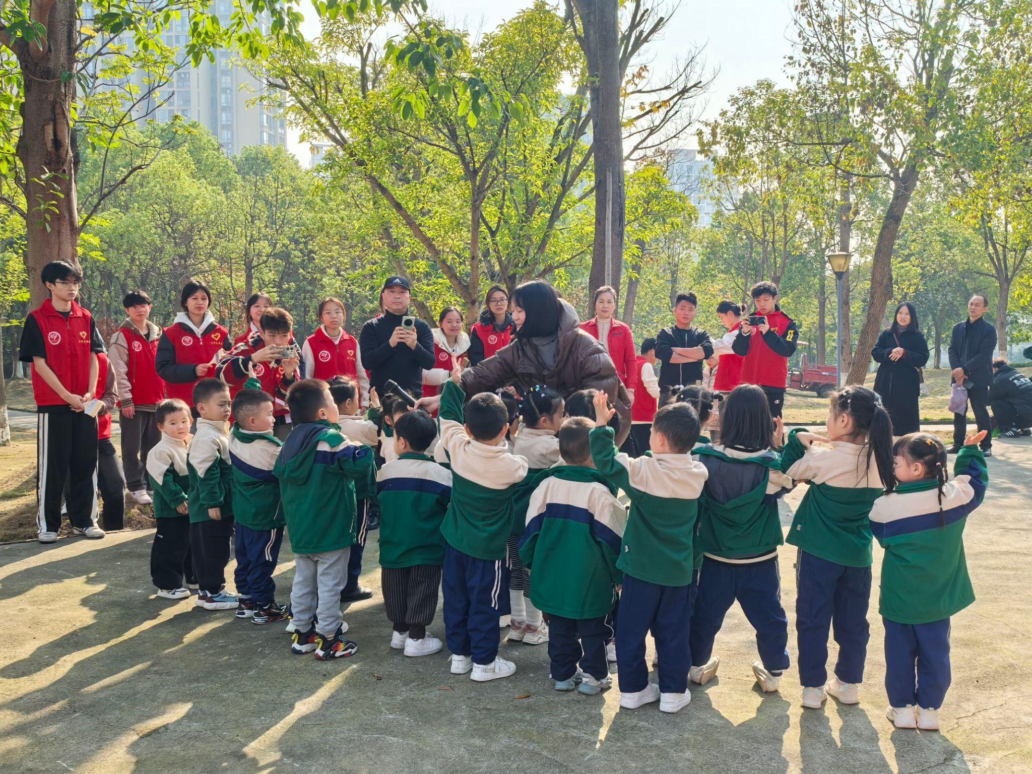 为培养孩子们的环保意识和劳动技能,同时促进家校合作,共同营造良好的教育环境。2024年11月30日由通信与信息工程学院“环保360”保护三江之水志愿服务专项支队主办,由共青团重庆移通学院委员会对接,重庆市合川区新华幼儿园、重庆移通学院别都书院协办合作,在重庆移通学院合川校区北校区读者公园开展了“暖树御冬韵,护绿育童心”活动。而在活动背后,志愿者们发挥了至关重要的作用。他们精心策划活动流程,确保各个环节既能让孩子们学到环保知识、掌握劳动技能,又充满趣味。他们精心策划活动流程,确保各个环节既能让孩子们学到环保知识、掌握劳动技能,又充满趣味。此次活动志愿者共计参与30余人,活动共计收益100余人参加。