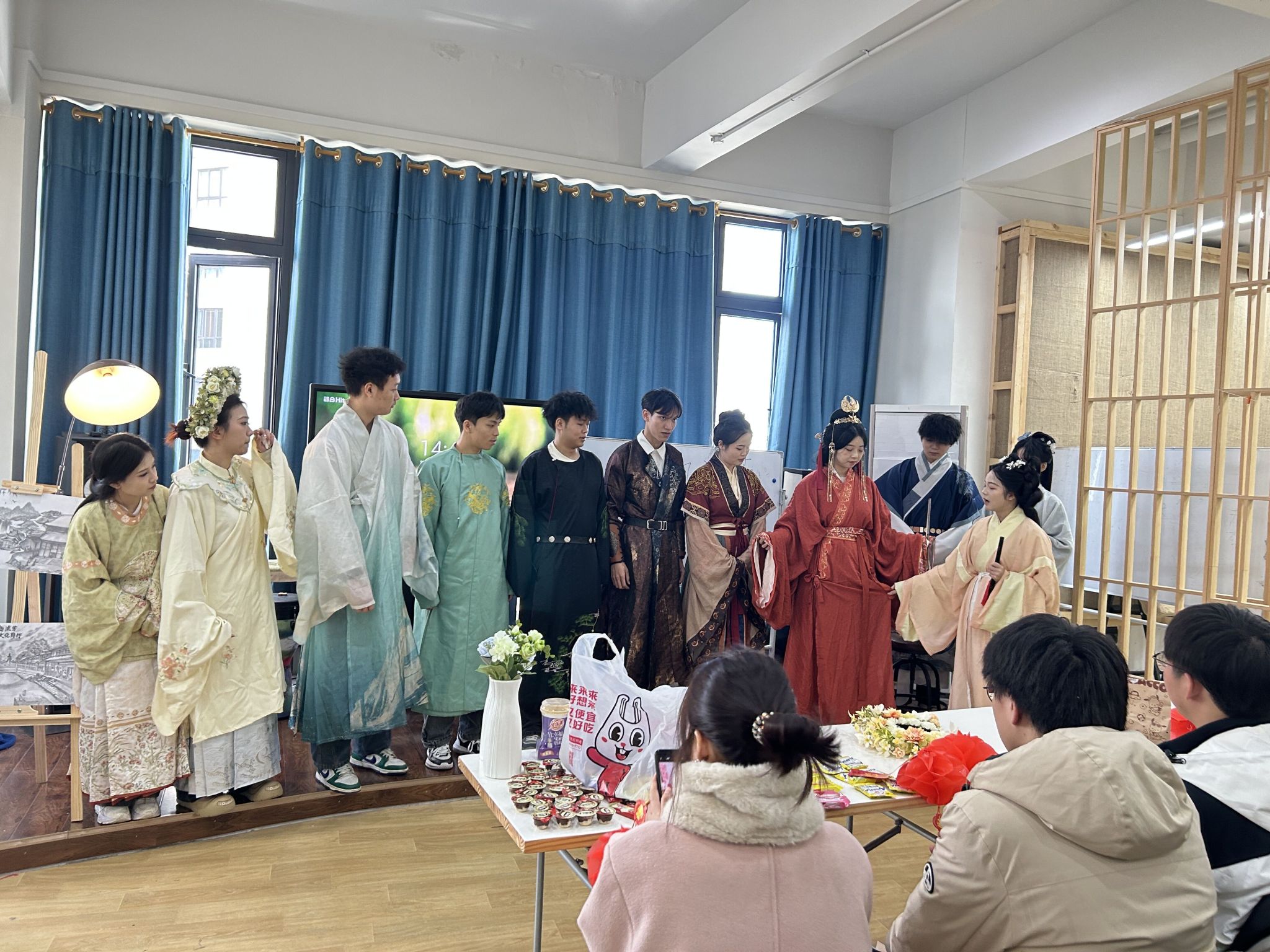 活动开始由汉服雅展率先登场,汉服协会成员以及班上体验汉服的同学身着精美汉服,宛如古典佳人,尽显传统服饰文化魅力。接着,诗歌朗诵《赤壁赋》、陈氏太极拳、古风吟唱等精彩节目一一呈现。同学们热情饱满、技艺精湛。