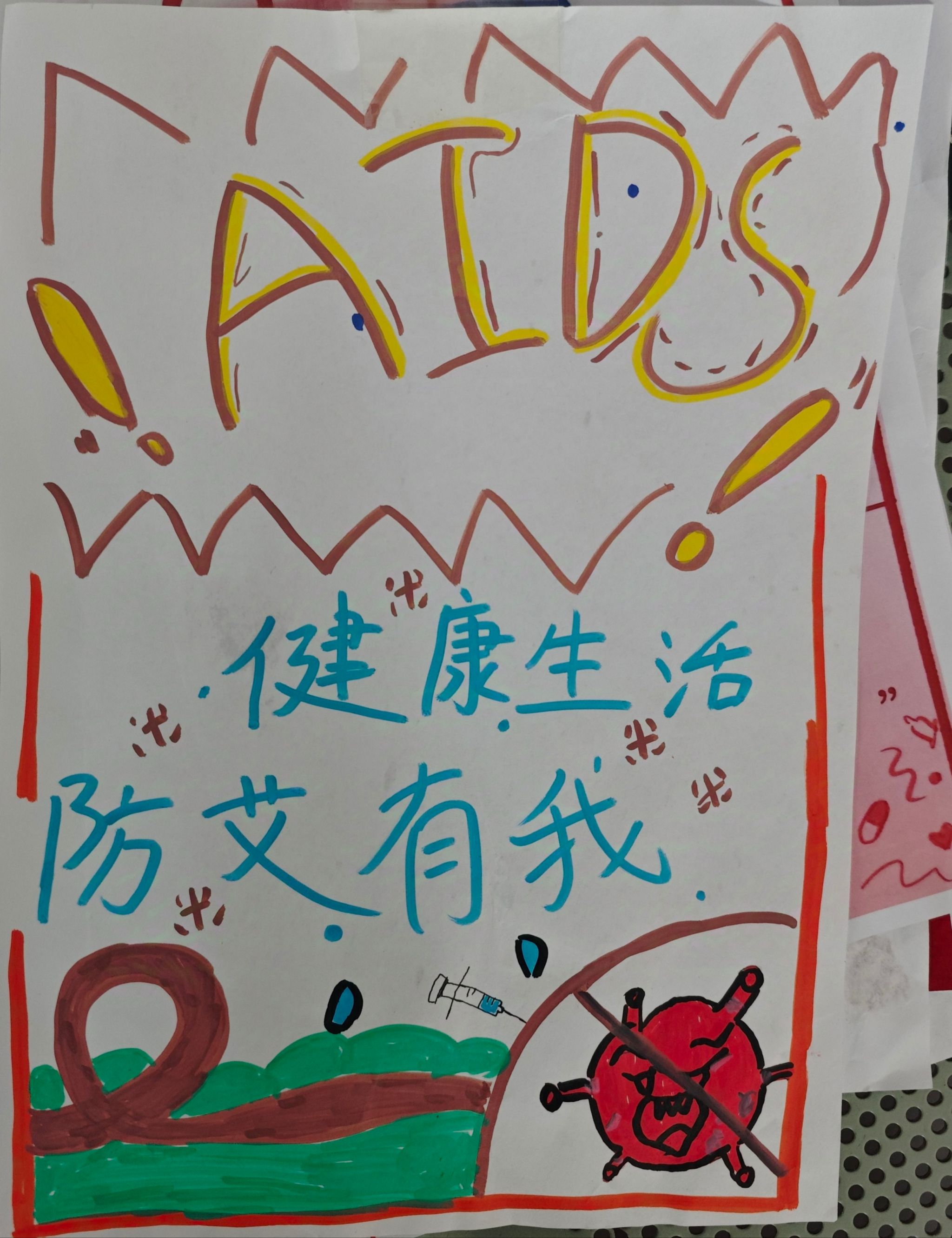 为了提高同学们对艾滋病的认识和防范意识,近日,“红丝带”禁毒防艾志愿服务专项支队举办了一场以 “以爱为笔,勾勒无艾家园” 为主题的手抄报活动。此次活动吸引了全校各年级同学的积极参与,他们用手中的画笔和丰富的想象力,创作出了一幅幅内容丰富、形式多样的手抄报作品,为校园增添了一抹别样的色彩,也为防艾宣传注入了青春活力。