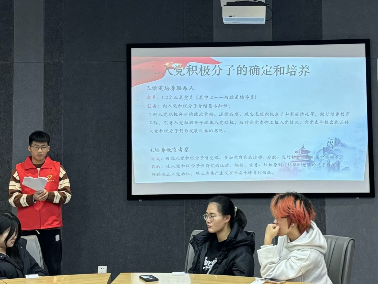 为帮助通信学子更好学习党组织的思想理论,汲取党的精华,激发前进热情。2024年12月7日12:30,由重庆移通学院通信与信息工程学院青年志愿者协会主办,重庆移通学院通信与信息工程学院青年志愿者协会承办,“党青之光”理论宣讲志愿服务专项支队、2024级通信工程03支部协办的“强化党性修养,践行初心使命”系列活动在重庆移通学院(合川校区)南湖书院圆桌会议室成功举办。