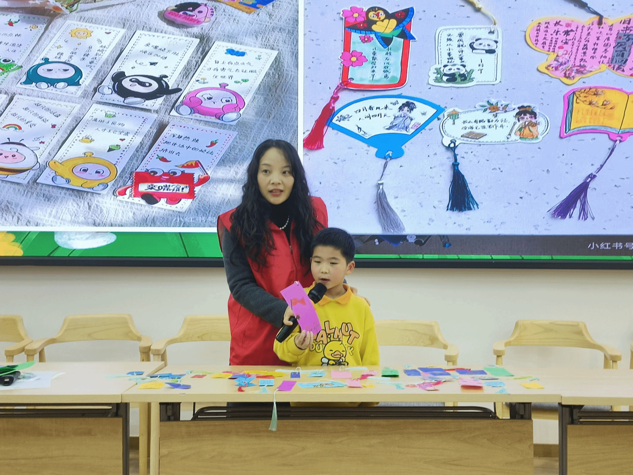 书签,点缀了书籍,也陪伴了阅读。为丰富小朋友们的课余生活,培养他们的创造力和想象力,合川区凤凰小学副校长—李凤娟携通信与信息工程学院“白鹿课堂”支教社区留守儿童志愿服务专项支队于2024年12月7日前往白鹿山社区成功开展了“制作美好书签·领略绘画之美”志愿服务活动。此次活动通过小朋友们亲手制作书签,展现他们独特的思维和创意,并培养艺术素养。
