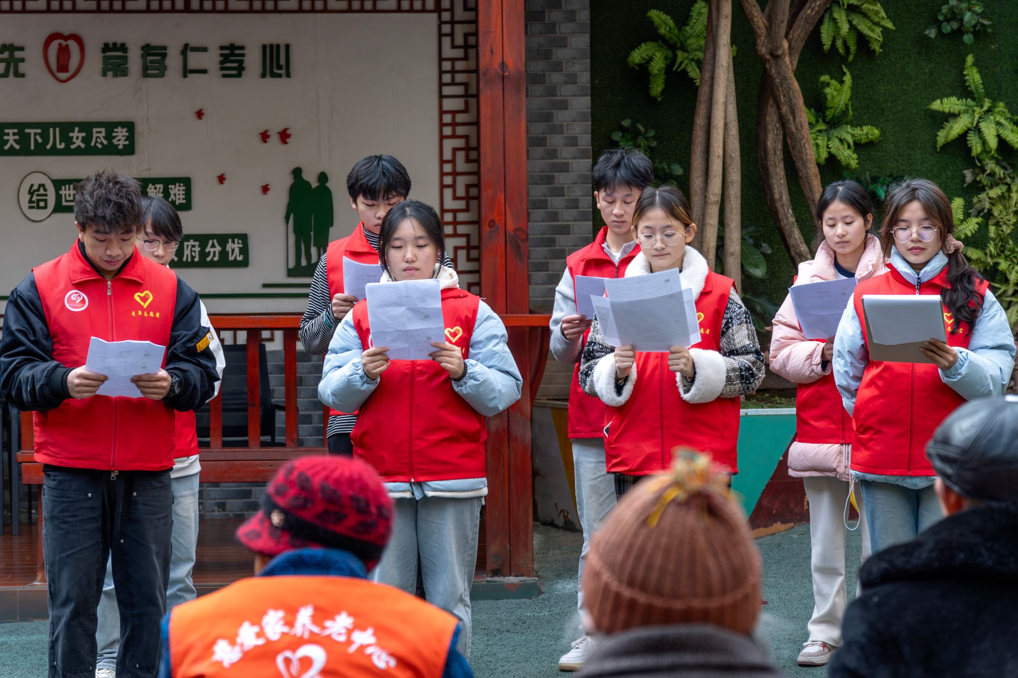 紧接着,志愿者们为老人们献上了一场精彩的文艺表演。表演分为三个环节:大合唱、单曲歌唱和朗诵。志愿者们用悠扬的歌声和深情的朗诵,表达对老人们的敬爱与祝福。每一个节目都赢得了老人们的热烈掌声,现场气氛热烈而欢乐。“暖冬汤圆”环节,志愿者们与老人们一起动手包汤圆,用行动将对老人们的爱意融入汤圆中。大家围坐在一起,边聊天边品尝着美味的汤圆,感受着彼此的关怀与温暖。