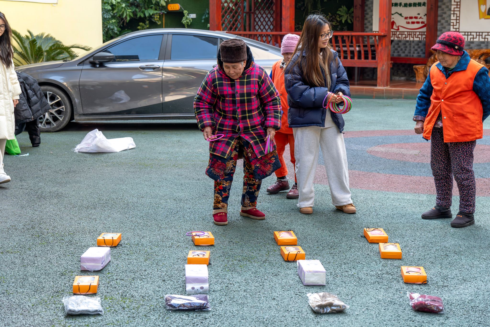 此外,志愿者们还特别设置了“关爱心声”环节。他们耐心地向老人们咨询生活、健康、娱乐等方面的内容,倾听他们的心声与需求,并尽力为他们提供帮助与支持。在套圈圈的游戏环节,老人们手持塑料圈将其投向自己的心仪物品,而志愿者在为老人加油的同时更多的是关注老人的动作和安全状况。随后,志愿者们为老人们送上了精心准备的礼物,他们的脸上洋溢着如同鲜花绽放一般的笑容。幸福如阳光般铺洒在志愿者的心田。