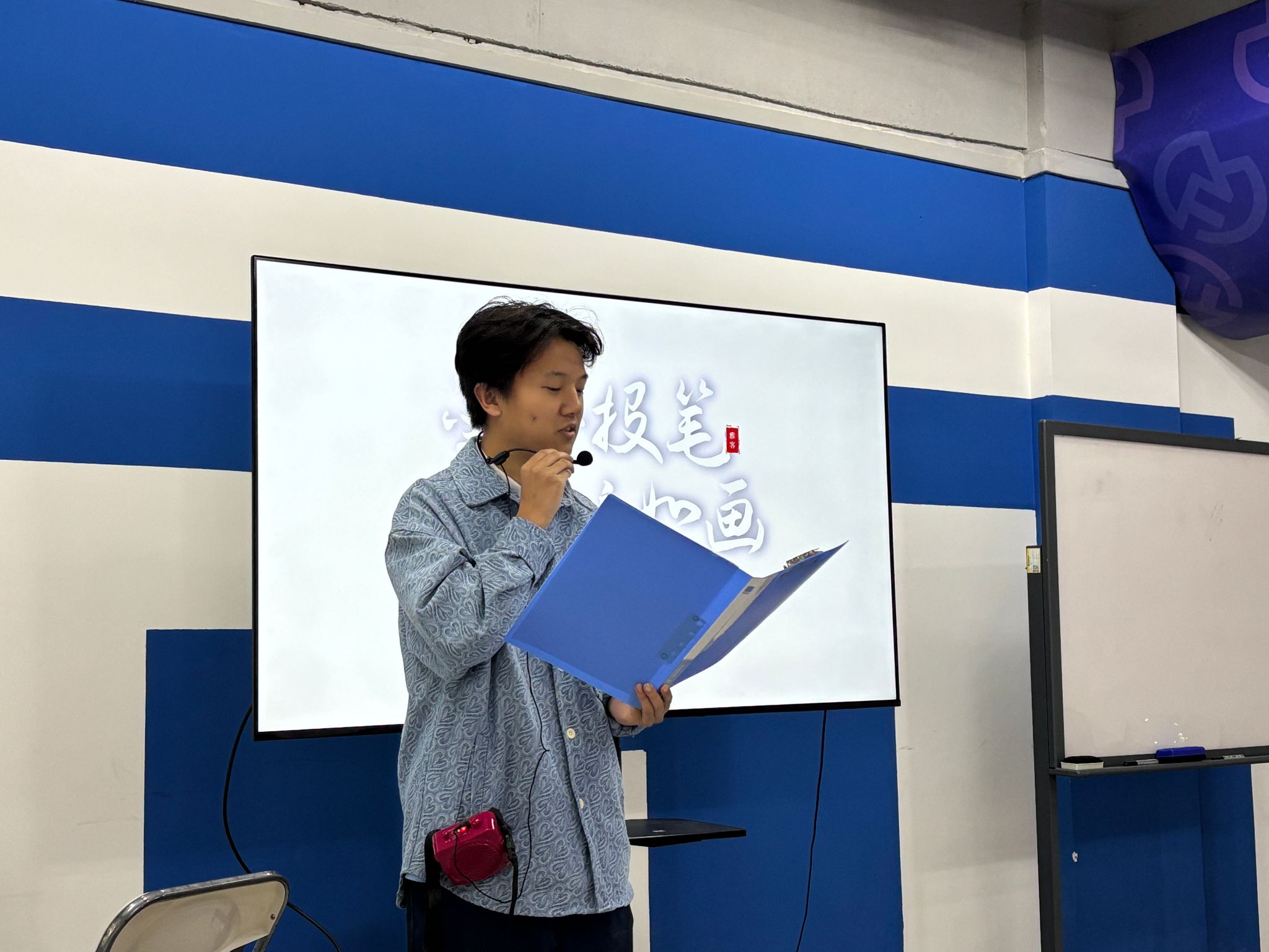 在主持人简短的活动介绍后,活动也正式拉开帷幕,支部成员们认真听完老师讲解的技巧,纷纷上手进行书写。从急于求成到放下急躁从零做起,从笨拙的执笔到慢慢上手,从歪歪扭扭的笔画到铿锵有力的落笔。这不单单是书写上的进步,更是在快节奏的生活中磨练了心性,也为心灵带来了一份平静。