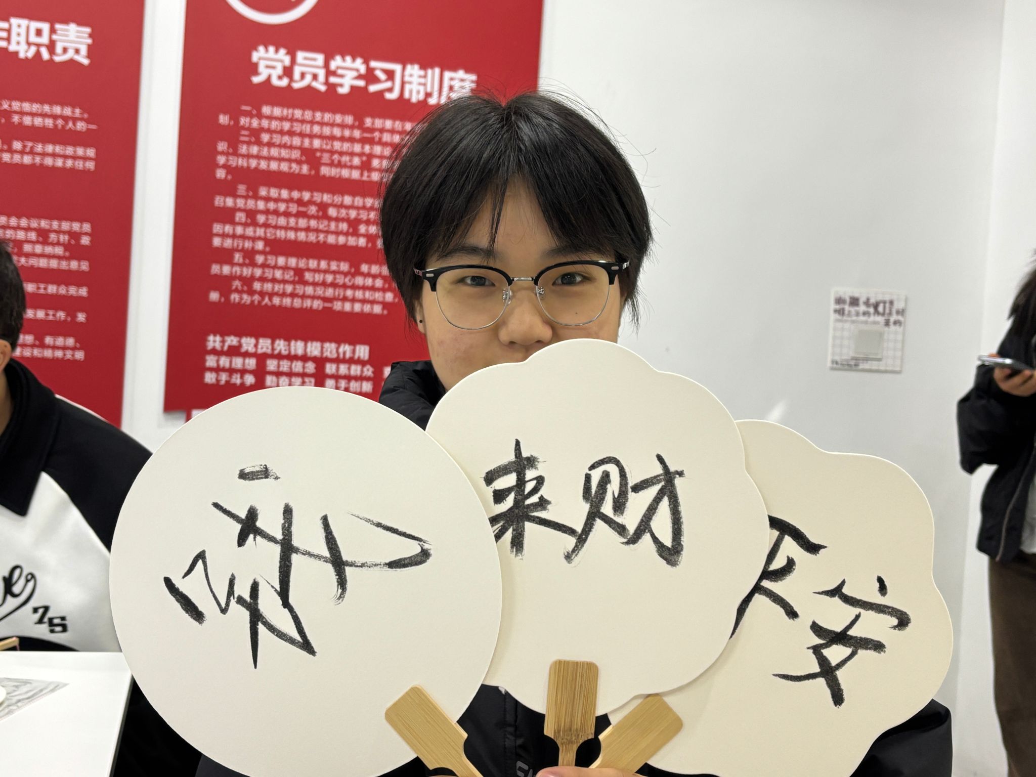 活动结束后,支部成员们纷纷展示书法作品,笔墨浓淡,字如其人。每一笔,每一画都有独特的肌理和线条,每一字,每一词都有标志的结构和映衬。支部成员也在主持人的引导下分享着本次的感悟,其中梁洪锟同学感慨:“通过这次活动不仅体验到了我国的传统文化,也感受到了它的魅力,文化背后的智慧也牢牢刻在心里这”。这次的书法活动,不仅让支部成员了解到抒发背后深刻的文化底蕴,也使支部成员在数字化的时代再次体会到书法艺术的魅力,提高了文化自信,坚定了传承中国文化的信念。
