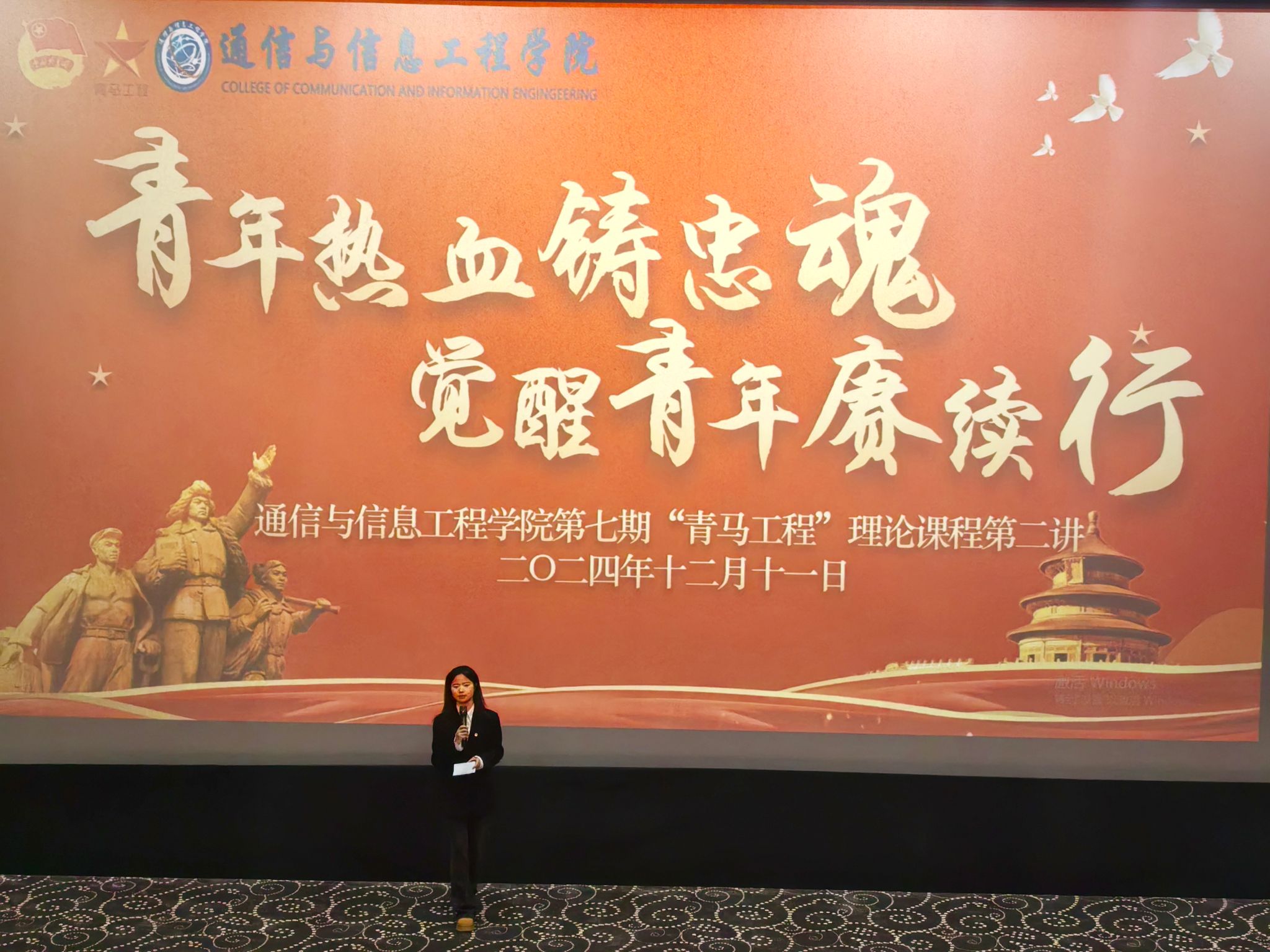 为弘扬奋斗与担当的时代精神,激发青马学员们的爱国情感,特此,通信与信息工程学院第七期“青马工程”初阶班于2024年12月11日下午2点,在万画影城2号影厅举办了以“青春热血铸忠魂,觉醒青年赓续行”为主题的理论课程第二讲。