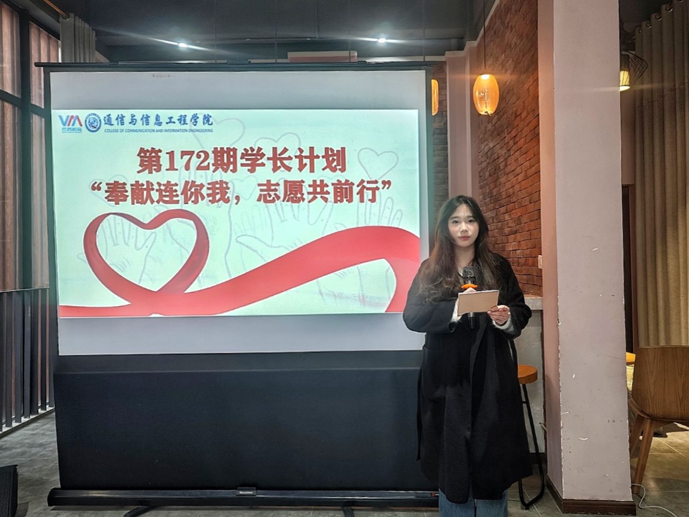 为了让同学们更深入地理解和参与志愿服务,在志愿服务和个人发展上获得启发和动力。通信与信息工程学院特邀本院青年志愿者协会执行主席周景瑞学长,举办了一场以“奉献连你我,志愿共前行”为主题的经验分享会。本次学长计划活动于 2024年12月13日14:00在别都书院朋辈交流中心圆满举行。