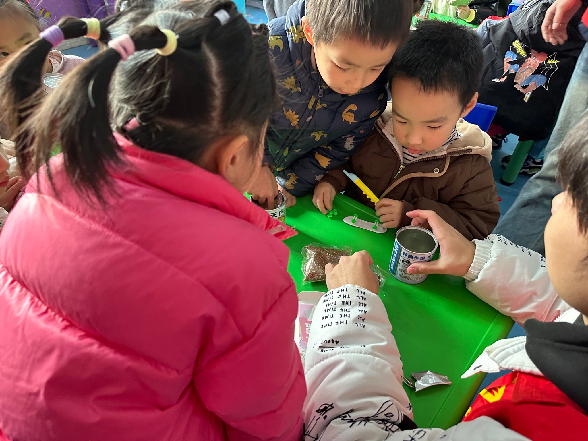 随后,种子梦想活动闪亮登场,志愿者们热情满满,他们提前精心准备了植物罐罐。考虑到罐罐打开易划手,志愿者们贴心地将其开好,在确保安全、避免弄伤小朋友的前提下,把罐罐分发给每一位小朋友。在志愿者们的耐心指导和帮助下,小朋友们亲手完成了植物种植的过程。他们小心翼翼地将种子埋入土壤,仿佛在种下一个个充满希望的梦想。